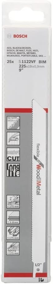 Product Description Bosch 1122VF Saber Saw Blade, 15cm x 8cm x 20cm, Blue. Set Contains: 1 x Sabre saw blade S 1122 VF