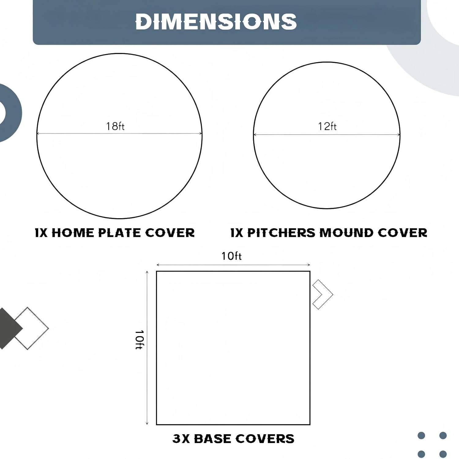 Features: Secure Fit with Reinforced Edges and Sand Bags: for reliable placement, each tarp features reinforced edges and is accompanied by sand bags. The 36 pcs sand bags can be positioned along the edges to help keep the tarps securely in place during windy conditions, offering a practical securing method. Simplified Field Maintenance and Storage: this bundle aids in streamlining field maintenance routines. The tarps can be deployed and removed quickly, and their design allows for straightforward folding and compact storage when not in use, contributing to efficient field management. Specifications: Material: PE Color: white Size: Pitcher's Mound is about 12ft Home Plate is about 18ft Base Covers is about 10ft Package includes: 1 x Pitcher's Mound 1 x Home Plate 3 x Base Covers 36 x Sand Bags Notes: Manual measurement, please allow slight errors on size. The color may exist a slight difference due to different screen displays