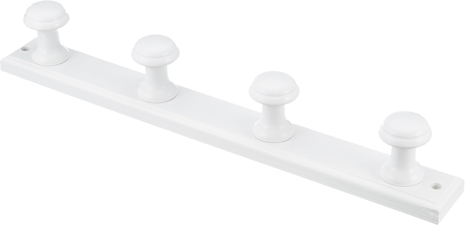 Wooden Coat Rack 3 Knobs Arco / Sapeli. Pack of 1. Coat rack made of varnished beech wood. 3 x Solid Wood Arch Shape Knobs Includes wall plugs, screws and trim to hide screws Size: 395 x 55 mm Colour: Sapeli. Packaging: Blister pack of 1.