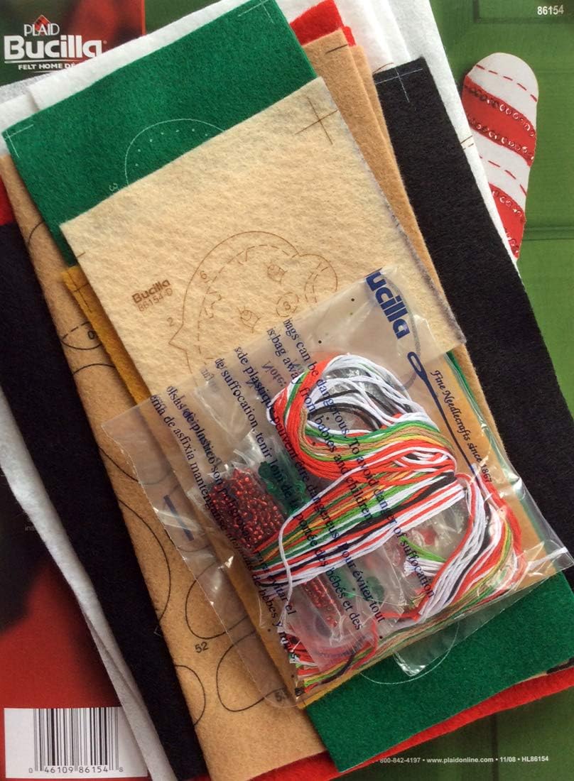 Felt Applique Home Decor. Bucilla always has the highest quality, most brightly colored and creative designs for their fabulous Christmas Applique Kits. This Kit contains stamped felt, cotton floss, color separated sequins and beads, needles and trilingual instructions. Finished measurements are approximately 18-1/2" x 13". Design: Santa Candy Cane 3D Wall Hanging. Designer: Maria Stanziani. Made in USA.