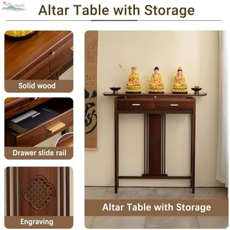 Enhance your spiritual journey with our Altar Table, thoughtfully designed for convenience and style. This versatile meditation table serves as an ideal pedestal offering table, perfect for establishing your personal meditation shrine or altar cabinet. Whether you're engaging in worship, prayer, or various rituals, this table creates a serene and sacred space for family shrines, temple ceremonies, ancestor veneration, daily meditation, incense burning, and divination practices. Key Features: - **Product Name**: Altar Table / Meditation Altar Table with Storage - **Material**: Bamboo This functional altar table adapts seamlessly to a wide range of spiritual activities, including prayer, incense offerings, and religious ceremonies. Its design also allows it to double as a meditation table, bedside table, reading table, side table, candlestick holder, crystal display, ritual implement table, coffee table, and display table. Assembly is easy and straightforward, ensuring you can set up your sacred space quickly. Package Includes: - 1 Altar Table Please note that decorative items are not included. The actual color of the table may vary slightly due to lighting conditions during photography. Dimensions are manually measured, so a variance of 1-2 cm may occur; the data provided is for reference only. Thank you for your understanding, and may this Altar Table enhance your spiritual practice.