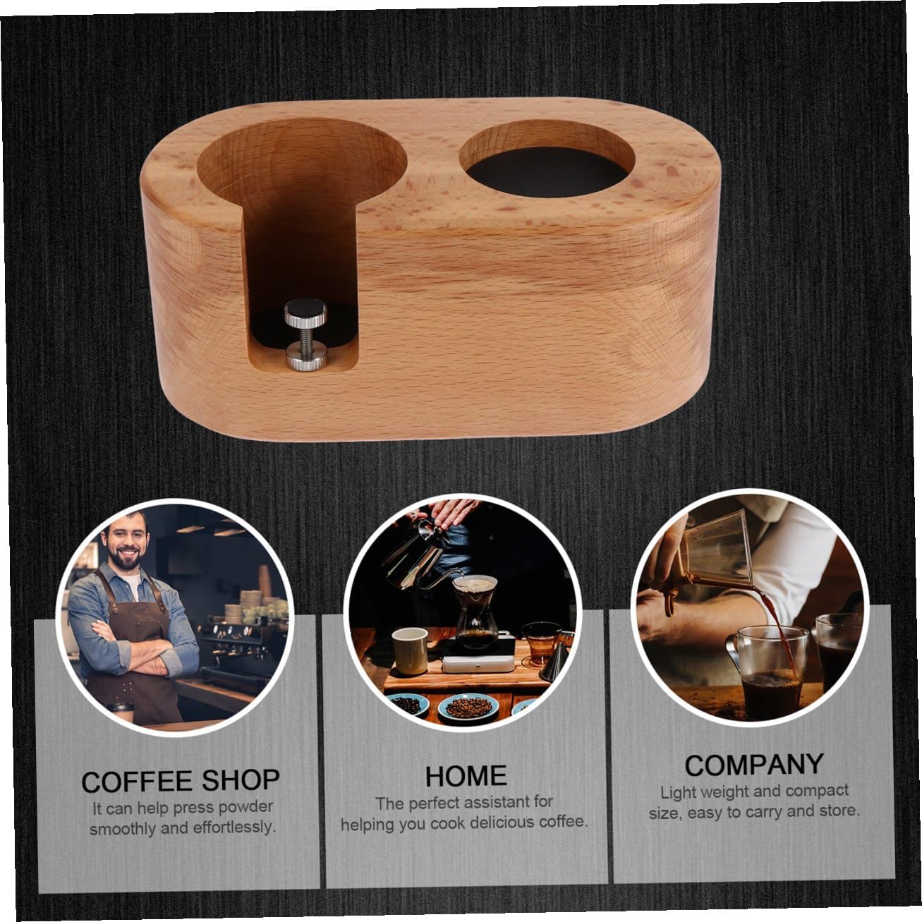 Package List 1 Powder Base Characteristics -Material: Wood, Rubber Coffee Brewing Hammer Cushion. - Using material and fine workmanship, you will use it for along time. Coffee Cooking Tool - It can help press powder smoothly and effortlessly Coffee Handle Rack. - The assistant for helping you cook delicious coffee. Press Powder Base - Light weight and compact size, easy to carry and store. Powder Seat - Anti-slip can prevent abrasion of the desktop Powder Press Base.Goods InformationPress Powder Base It is help you press coffee beans into powder and store coffee handle and hammer.Coffee Brewing Hammer Cushion A for friends.Coffee Handle Rack material that can its durability and practicability.Coffee Tool This item is a powder seat, manufactured with materials, so that it can serve you for many years