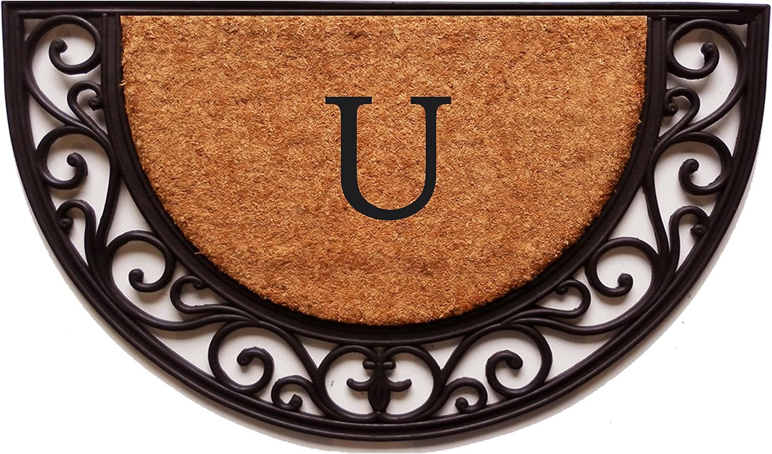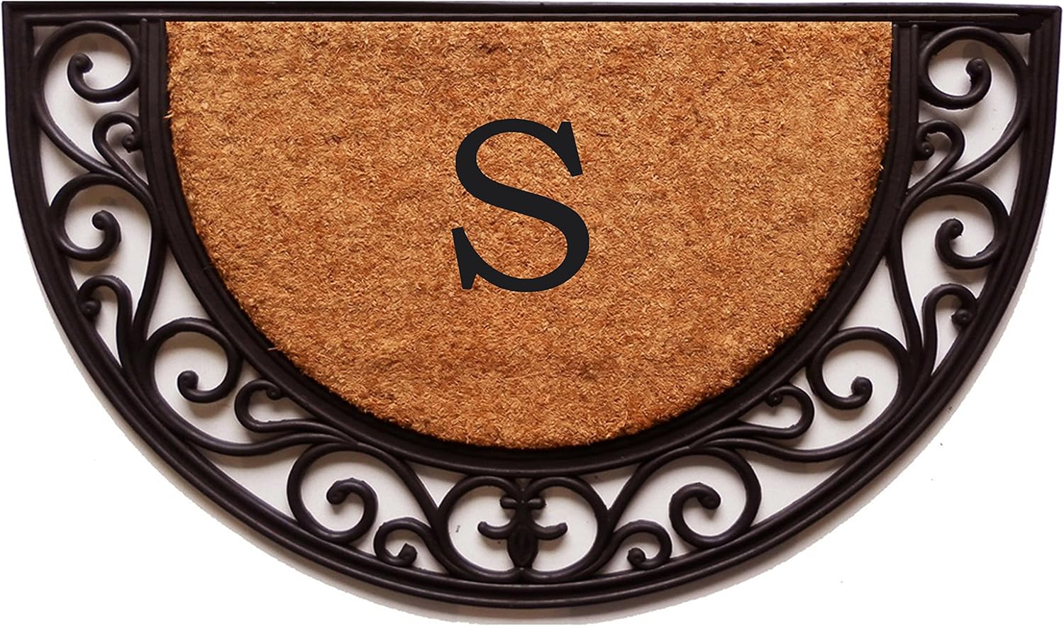 Welcome guests with this beautiful arch monogrammed doormat. Heavy-duty, yet elegant, this mat is made of durable rubber and natural coir. Weather tolerant and resilient to heavy traffic, the dense coir scrapes shoes clean, keeping debris from your home. Vacuum, sweep or lightly hose clean and allow to dry.
