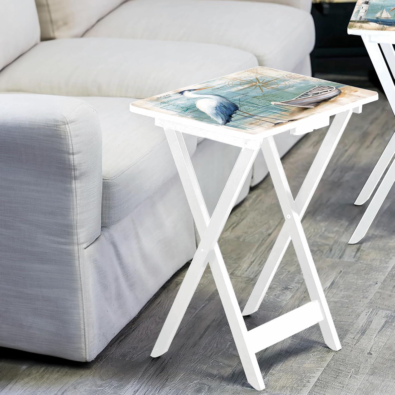 This unique set of tables will make a great addition and extra table space for your living room, den or man cave. Made of sturdy MDF wood, these tables are uniquely designed pieces with heat and water resistant tops and heat-printed designs. This set includes 4 fold-able TV tray tables and a storage stand that require some easy assembly upon arrival. Each table measures approximately 19.5 x 32 x 14 inches. Entertaining is made easy with Cape Craftsmen’s TV tray collection. Our designer tray sets have become a trendsetting staple item. The custom artwork that embellishes each sturdy, well-crafted piece will suit a variety of styles and themes. These bestsellers blend fashion with function and bring a chic dining and entertaining solution to anyone’s home. They offer plenty of room with their generous surface area and can function as a unique side table as well as provide extra room for family meals, backyard barbecues, parties, celebrations, game days in front of the TV, and more. Cape Craftsmen's TV Trays allow for extra table space and make a great addition to any living room, den, man cave, or kitchen. Folds Flat for Storage! The convenient size and ability to fold up flat for storage purposes will make your life easier. Sturdy Storage Stand Included. A sturdy storage stand is included to house Cape Craftsmen's set of 4 TV Trays. Care Instructions: Wipe with a damp cloth to clean. Make sure the trays are fully extended and on stable ground before placing items on top. Do not leave outside for extended periods of time Store in a dry place