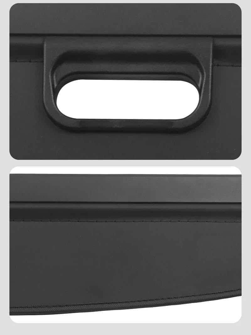 "Features:1. Made of cloth material more durable.2. The shade curtain is fixed on the trunk easy to install .divides the trunk into two layers which is convenient for storing goods to maximize the use of space to protect your goods from peeping so that your car will not be so crowded 3.Complete goods protection. You can effectively shield the goods in the trunk better protect personal privacy and prevent theft. When you want to put high items you can also easily disassemble and install them.It can be stretched freely.When you use them you just need to pull them up. When you don't use them you can put them in. 4.Fully retractable like a window shade for easy use and removal.Specification:1.Placement on Vehicle: Cargo/Trunk Rear 2.Type: Cargo Cover3.Color: BlackPacking Includes:1 x Luggage CurtainRetractable rear trunk parcel shelf made of thickened aluminium alloy and high-density canvas, the shield shade possess strong load-bearing capacity and stress resistance.Conceals your belongings from view with this durable boot cover, offering peace of mind and added theft deterrence.
