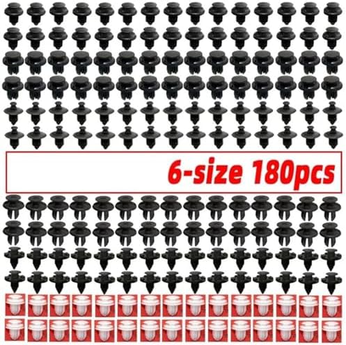 Package Contents:180*Fastener Rivet ClipsThese car accessories are often needed and are very important.- These car accessories are small and lightweight, making them easy to carry and use on a daily basis.- Material: Made of Plastics,suitable for car use.- Easy to install,direct replacement.- Save time and effort when decorating the interior and exterior of your car.- Features: 1. Premium Plastic: These car mounting clips are made of premium plastic, ensuring their durability. The robust material provides reliable support and abrasion resistance, guaranteeing the clips can withstand repeated use. Reliable Panel Securement: Whether you are replacing a damaged panel or perCompatible Forming routine maintenance, these clips ensure a tight and secure installation.