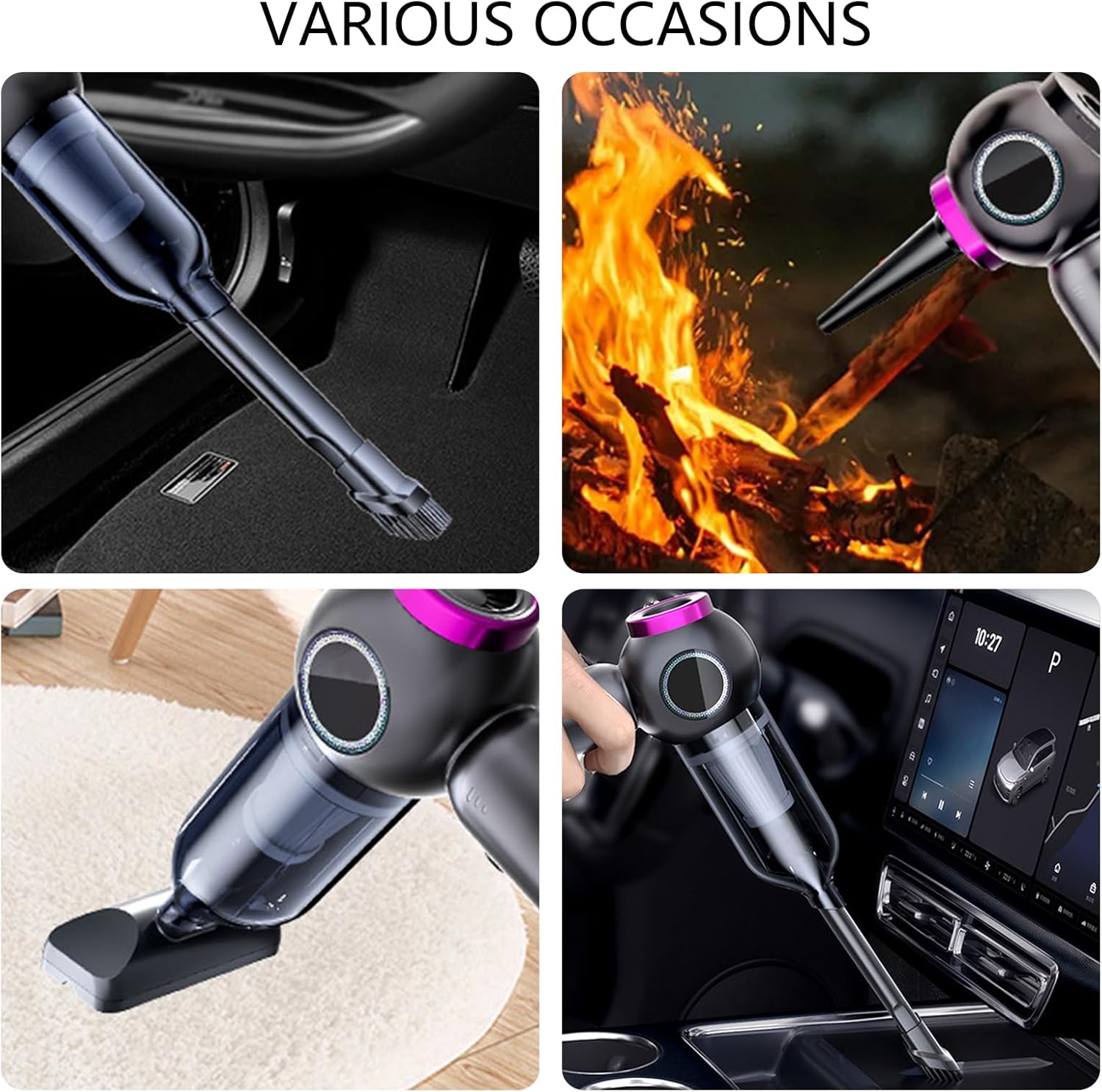 Car Vacuuming Air Blower For Car Powerful Portable Appliance Cordless Vehicle Features powerful suction with our car and home vacuuming featuring a high efficiency motor that removes debris, and hard to reach particles from various surfaces.Lightweight ABS construction comes with versatile nozzles like soft brushes for thorough on carpets, upholstery, and car interiors.Designed for busy families, frequent travelers, and car owners who prioritize convenience and need a portable to tackle crumbs, pet hair, and everyday messes car seats, home furniture, tight corners, and electronics using its cordless flexibility suitable for trips or routine household maintenance.Optimize your routine with a rechargeable, ensuring environments at home.Specifications:Component ABS Color Silver Size Approx.212x202x70mm 7.95x8.35x2.76inch cup capacity: 0.2LPower: 100WPumping pressure: 15KPa high-endInflatable pressure: 15KPa high-endCharging time: about 3 hours (start to full charging)Battery capacity: 18650x3x2000mAh 11.1VPackage Includes:1Pc Handheld vacuuming Note 1.Please allow 1-2cm errors due to manual measurement, making sure that you not mind before order. 2.Due to the differences between different monitors, the picture may not reflect the actual of the item.