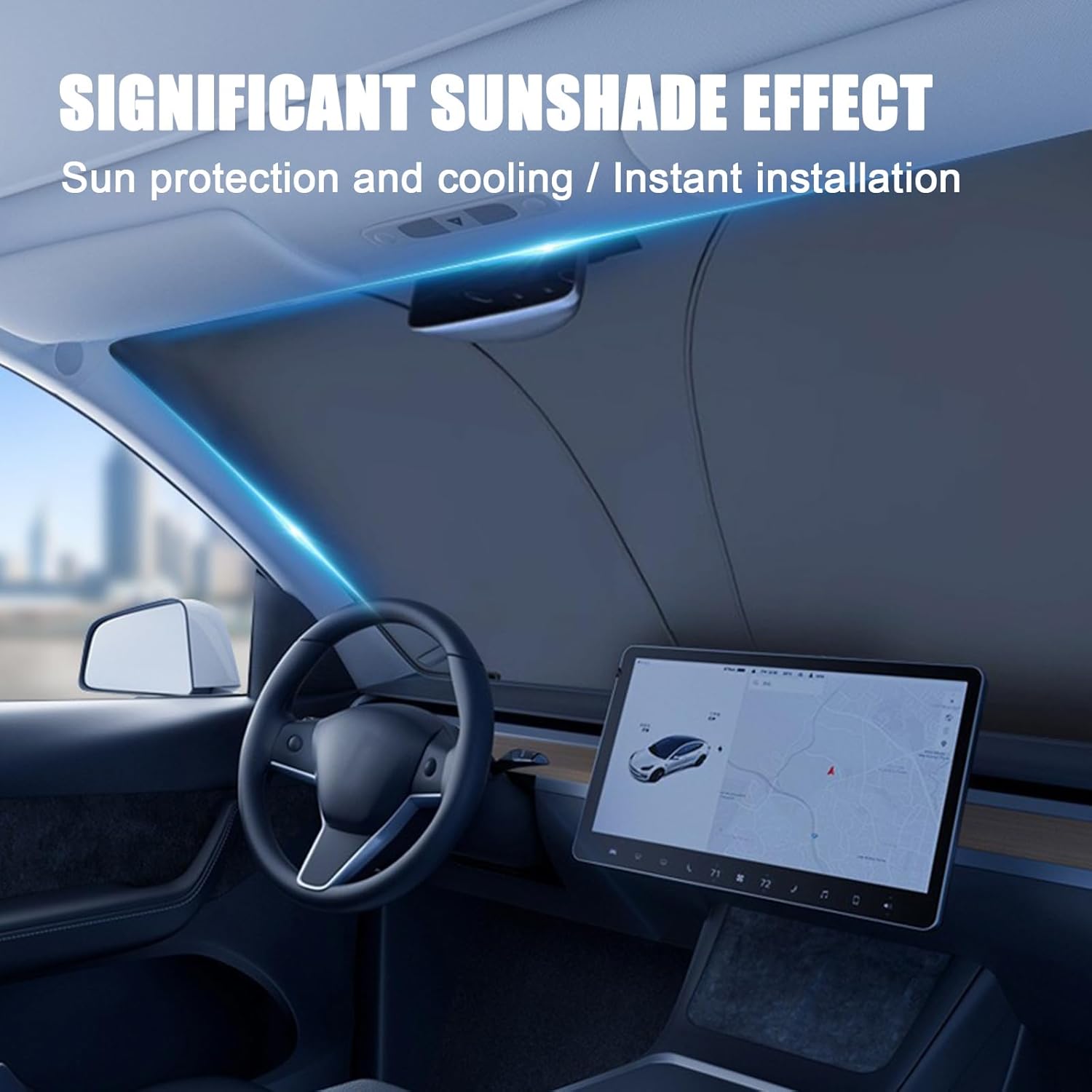Product description Description: -100% brand new -Material: excellent -No tools required, easy installation -Made to high quality standards for long life and durability 【Features】: 1.Our front sunshade help cut sun glare and reduce heat, provide heat shield and keep your vehicle cooler. 2.The car front window sunshades are opaque to protect your privacy. 3.Seamless installation, consistent with the car border. Strong shielding, can keep the car cool in the car. Folding design, easy to store and use. Strong and durable, can be used for a long time. 【Notice】: The actual item's color maybe slightly different from the pictures shown due to the lighting or computer screens.