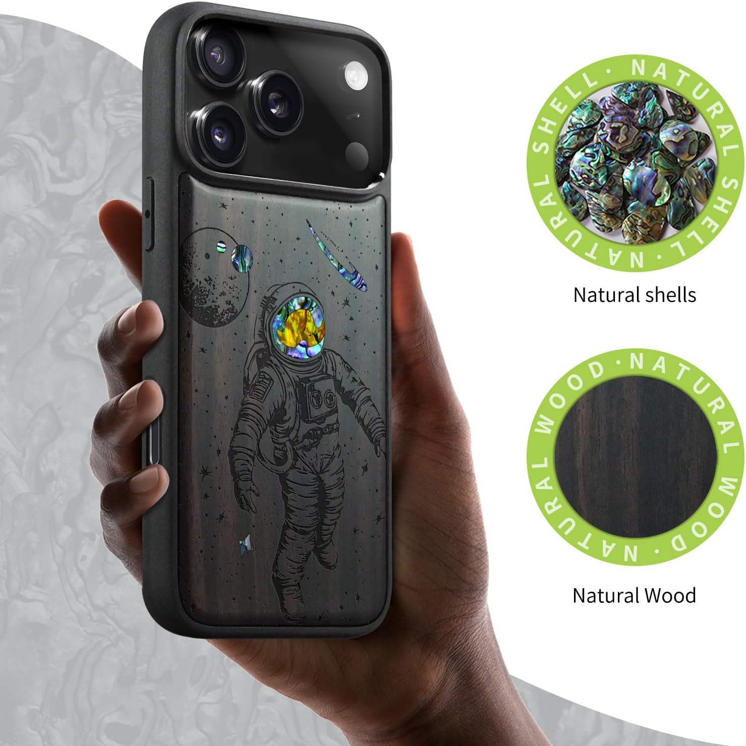| Additional Features | Natural solid wood back panel and laser engraving, The unique solid wood keeps the palm dry and prevents fingerprints from sticking to the surface of the case, keeping it clean and elegant |