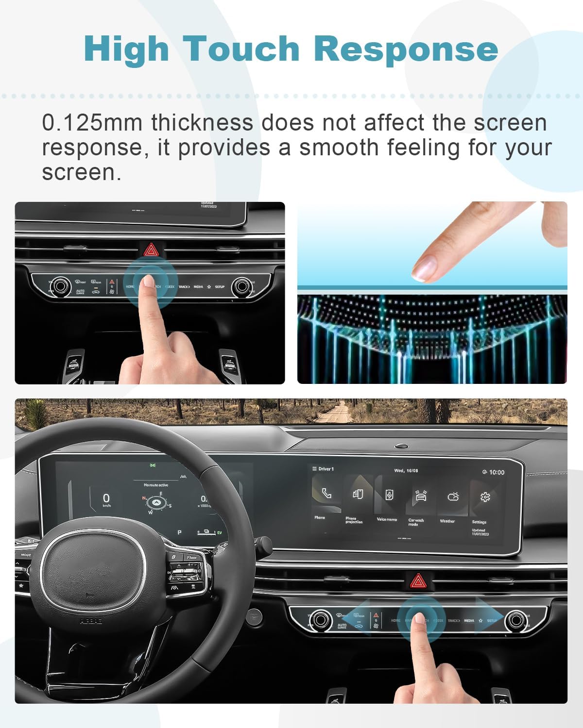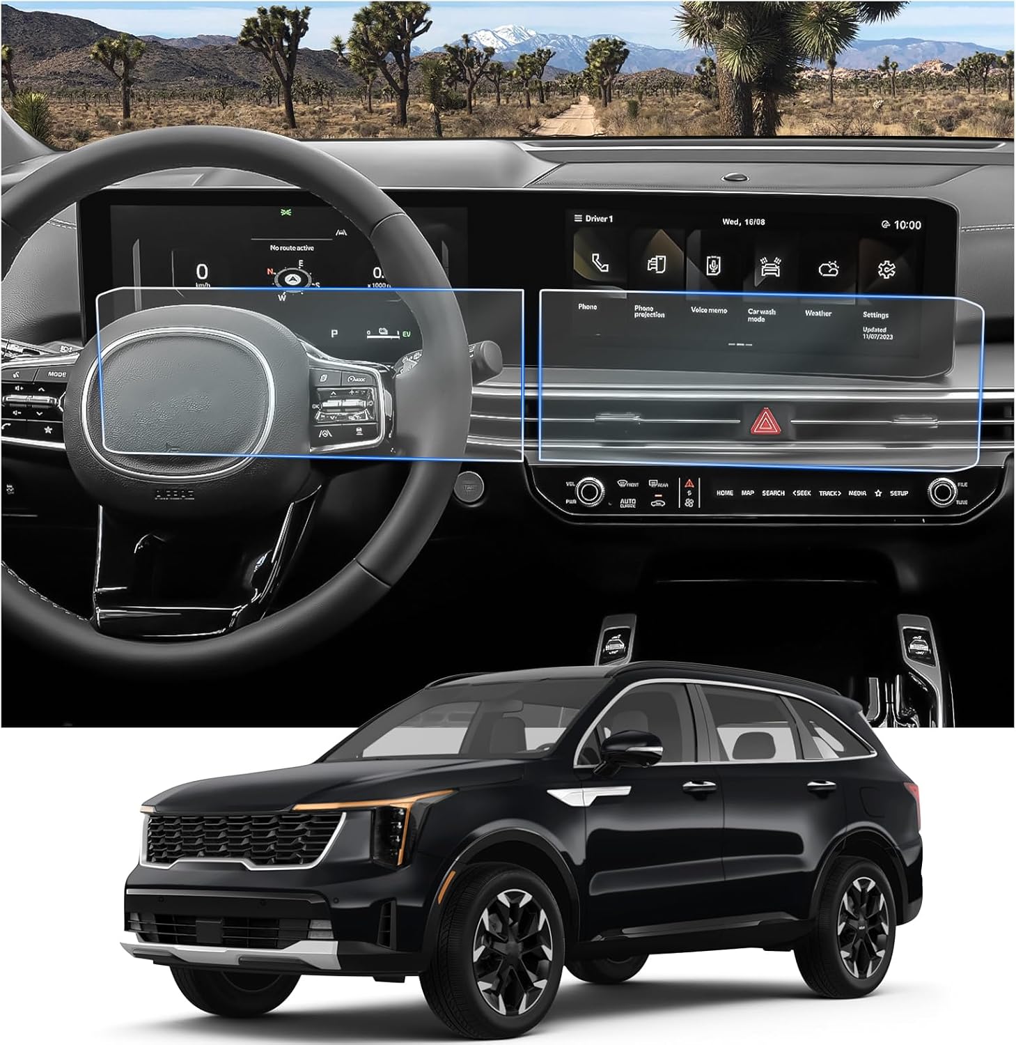CDEFG 4PCS 2024 2025 Sorento Screen Protector compatible with 2024 2025 Sorento Navigation Display Screen Protector Foils Center Dashboard Screen Film 2024 2025 Sorento Hybrid Screen Cover Screen Guard 2024 2025 Sorento Hybrid Accessories Compatible with: 2024 2025 Sorento Hybrid LX/S/EX/SX/SX Prestige/X-Line dual 12.3-inch screens.Material: NANO Features:1. The protector was laser cutting, it used the advanced materials to fit your screen perfectly.2. 0.125mm Ultra-thin help your screen easier feel glossy, and prevent your screen from dust, wear and scratch.3. Easy to clean, when it comes to a dirty screen with spills like coffee or drinks full of it, then you can clean lightly with our auxiliary tools, helps you clean your screen easier.4. The coating can help reduce the fingerprint and oil.5. Before installation, make sure the screen has no dust and residues, please line up the protector to the screen, and make sure it goes in straight- the right way