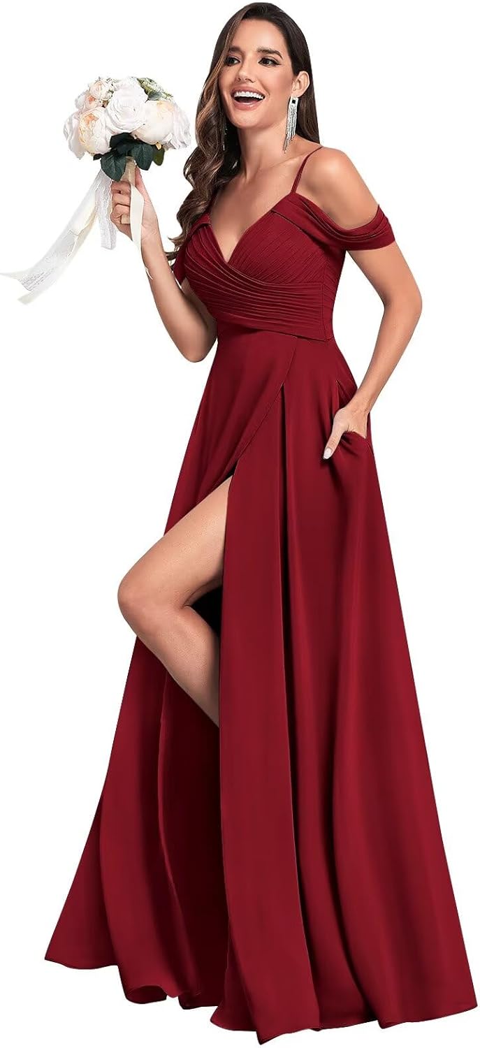 Welcome to our store! We have been engaged in manufacturing high quality dresses including Bridesmaid Dresses, Prom Dress, Wedding Dresses, Homecoming Dresses, Semi-Formal Dress, Evening Party Cocktail Ball Gown, Quinceanera Dresses, Girls Pageant Dress, Flower Girl Dress and Any Other Special Occassion Dresses. We choose high quality fabric and implement very strict QC during production to provide our customers with perfect dresses. Fabric: Chiffon bridesmaid dress Dresses Length: Long bridesmaid dress Neckline: V neck bridesmaid dresses for women/off the shoulder bridesmaid dress Silhouette: A-line bridesmaid dresses for wedding Sleeve Type: Sleeveless/cold shoulder bridesmaid dresses Closure Type: Lace up corset bridesmaid dresses/open back/backless Custom: If you are not sure about your right size according to our size chart, please send us your detail measurements as the following list. A.Full Bust _____ inch B.Waist _____ inch C.Hips _____ inch D.Hollow to floor(Shoulder to Feet with heels on) ___ inch E.The date you need the dress_____ Warm reminder: A.Due to the lighting and the screen,the clothing's picture display and actual color may be slightly different. B.Our dresses are measured manually and there may be an error of 1-2cm.