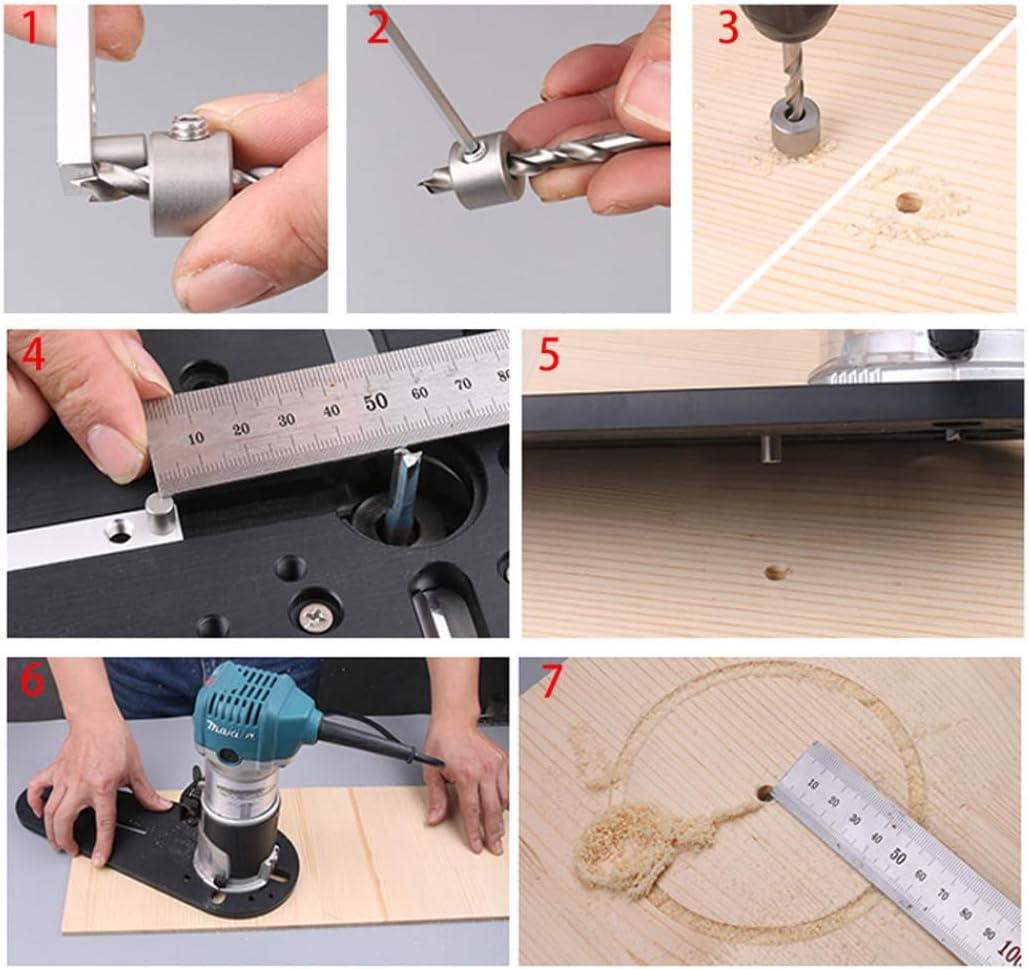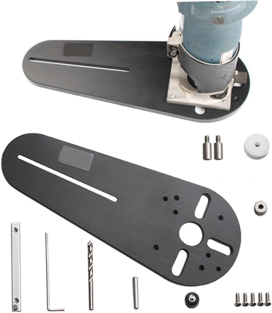 Description: The maximum cutting diameter of circle cutting jig: 690mm. Minimum cutting diameter: 20mm. wood routers circle jig is made of bakelite material, and long life. The hand trimmer milling groove is easy to install and convenient, just need to drill and install it yourself according to your router/trimmer. Features:. circle cutting jig. -Color: Black. -Material: Bakelite. - Size: Max cutting diameter: 690mm/27.17 inch Min cutting diameter: 20mm/0.79 inch Style 1: Compatible with 3700B, 3709 Compatible with Open at3300a Compatible with Wicks WU619 Compatible with Dongcheng M1P-FF02-6, M1P-FF03-6, M1P-FF04-6 Note: Manual measurement, please allow slight errors on size. The colors may exist slight difference due to different screens. Package Including 1 * Circular Cutting Jig for Small Wood Router1 * Drill Bit is for the Pilot Hole1 * Center Locating Ring1 * Position Rod1 * Limit Ring1 * Wrench1 * Adjustable Handle1 * Adjustable Aluminum Block1 * Positiong Rod4 * Mounting Screws1 * Instruction