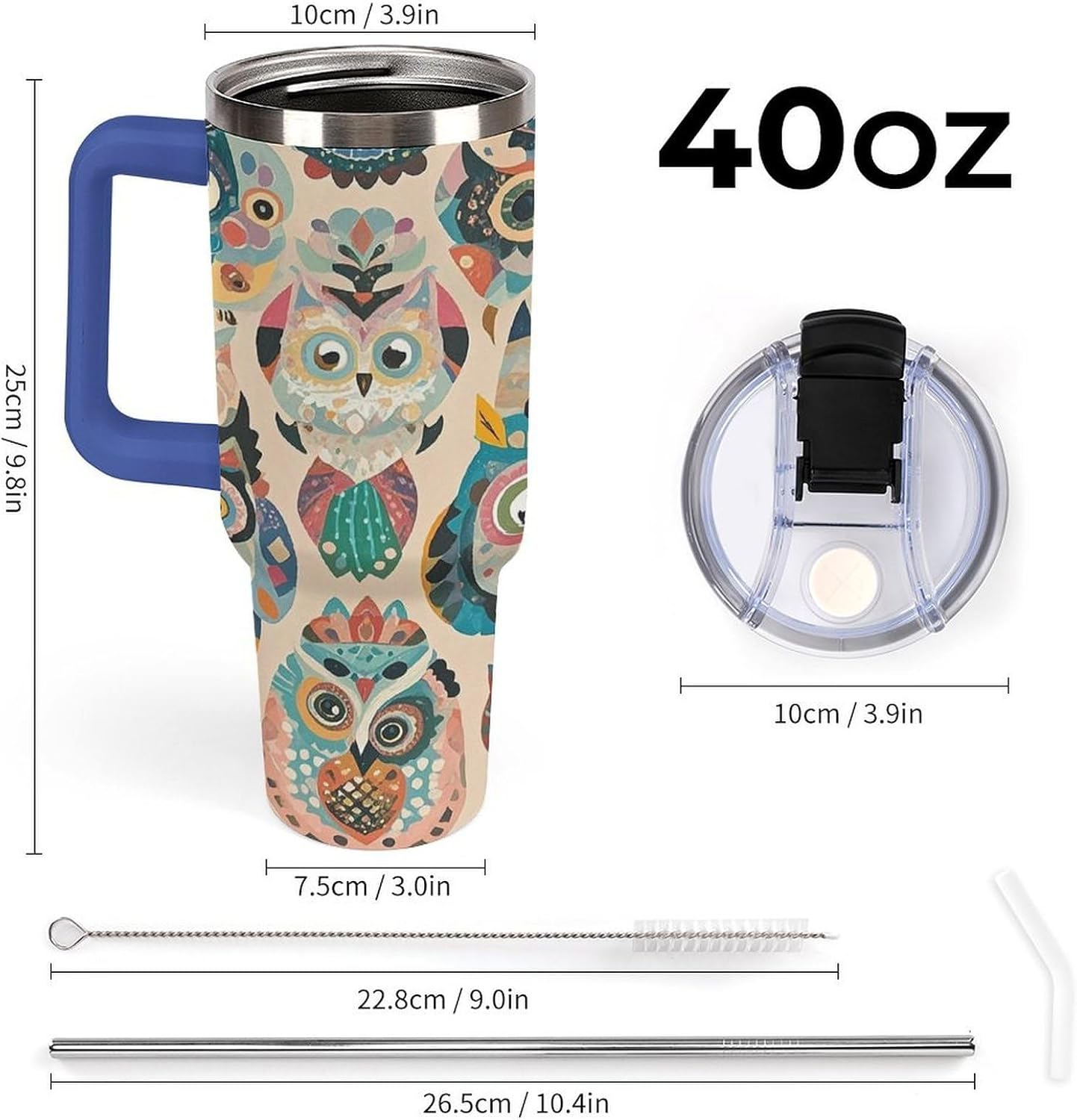 Crafted with 304 stainless steel, this Double Wall Vacuum Color Owl Pattern Travel Mug prioritizes both durability and safety. Its sleek design earns it the title of a Fashion Coffee Cup, complementing any setting from your kitchen counter to your car's cup holder. The Cupholder Friendly Double Wall Travel Cup shape ensures stability, even on bumpy roads, making it an ideal Travel Coffee Mug for those always on the move.This 40 oz Color Owl Pattern Stainless Steel Bottles is more than just a drinkware item—it's a lifestyle essential designed for modern living. As a Vacuum Insulated Tumbler, it leverages double-wall technology to keep your drinks hot or cold for hours, making it the perfect Insulated Coffee Cup for early mornings and late afternoons alike. The BPA-free lid with a stainless steel straw offers two convenient drinking options, while the leak-proof seal ensures peace of mind during your daily commute or outdoor trips.Whether you're heading to work, embarking on a road trip, or simply relaxing at home, this Large Travel Flask adapts to your needs. Its generous capacity eliminates the need for frequent refills, while the easy-to-clean interior and included brush simplify maintenance. Embrace the convenience and style of this Cute Travel Mug—a must-have for anyone who values functionality without compromising on aesthetics.Insulated Coffee Cup Travel Coffee Mug Vacuum Insulated Tumbler Cute Travel Mug Double Wall Vacuum Travel Mug Stainless Steel Coffee Mug Insulated Car Cup Stainless Steel Bottles Coffee Tumbler Vacuum Travel Mug Leak-proof Large Capacity Car Cup Keeps Cold or Hot Portable Coffee Cup Insulated Water Bottle Stainless Steel Water Bottles Fits in Any Car Cup Holders Large Capacity Metal Coldest Flask Reusable Mug with Straw or Leakproof Flip Lid, Keeps Drinks Cold Insulated Stainless Steel Cup Insulated Coffee Mug Thermal Cup Stainless Steel Tumbler Reusable Cup with Straw Leak