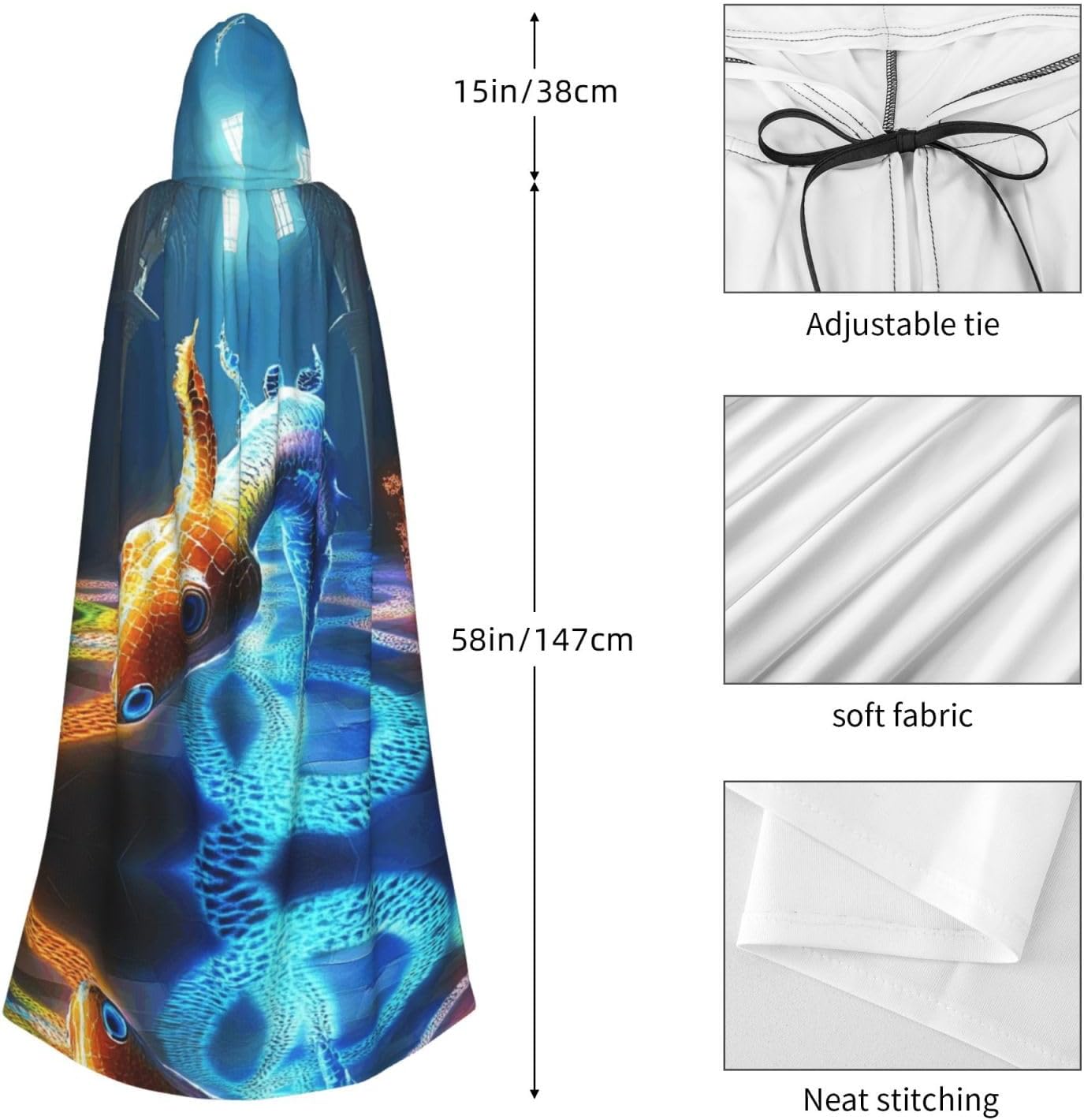 Colorful Animals Elevate Your Costume Game With The Unique Darkness Poncho Shawl, A Versatile And Customizable Wearable Blanket Designed For Women. This Poncho Shawl Is Perfect For A Variety Of Occasions, From Halloween Parties And Cosplay Events To Stage Performances And Themed Gatherings.Customized Design: Each Poncho Is Meticulously Designed With Full-Print Patterns, Allowing You To Express Your Unique Style And Stand Out In The Crowd. Whether You'Re Dressing Up, This Poncho Will Add A Touch Of Personality To Your Ensemble.Comfort And Durability: Crafted From Polyester, This Poncho Offers A Soft, Non-Itchy Feel That Ensures Comfort All Night Long. The Durable Material Is Built To Last, Making It A Reliable Addition To Your Costume Collection.Hooded And Long: The Poncho Features A Large, Comfortable Hood And An Extended Length, Providing Extra Coverage And Warmth. The Added Length And Hood Make It Perfect For Chilly Evenings, Ensuring You Stay Cozy And Stylish. This Poncho Is Also Ideal For Renaissance Fairs, Comic Conventions, And Any Other Event Where A Striking And Unique Accessory Is Needed.Easy Care: This Poncho Is Machine Washable And Easy To Care For, Ensuring It Maintains Its Vibrant Colors And Durability Over Time. It'S A Hassle-Free Addition To Your Wardrobe That Will Keep You Looking And Feeling Great.Whether You'Re Attending A Halloween Party, A Cosplay Event, Or A Themed Gathering, The Unique Darkness Poncho Shawl Is The Perfect Accessory To Complete Your Look. Make A Statement And Stand Out With This One-Of-A-Kind, Customizable Poncho.