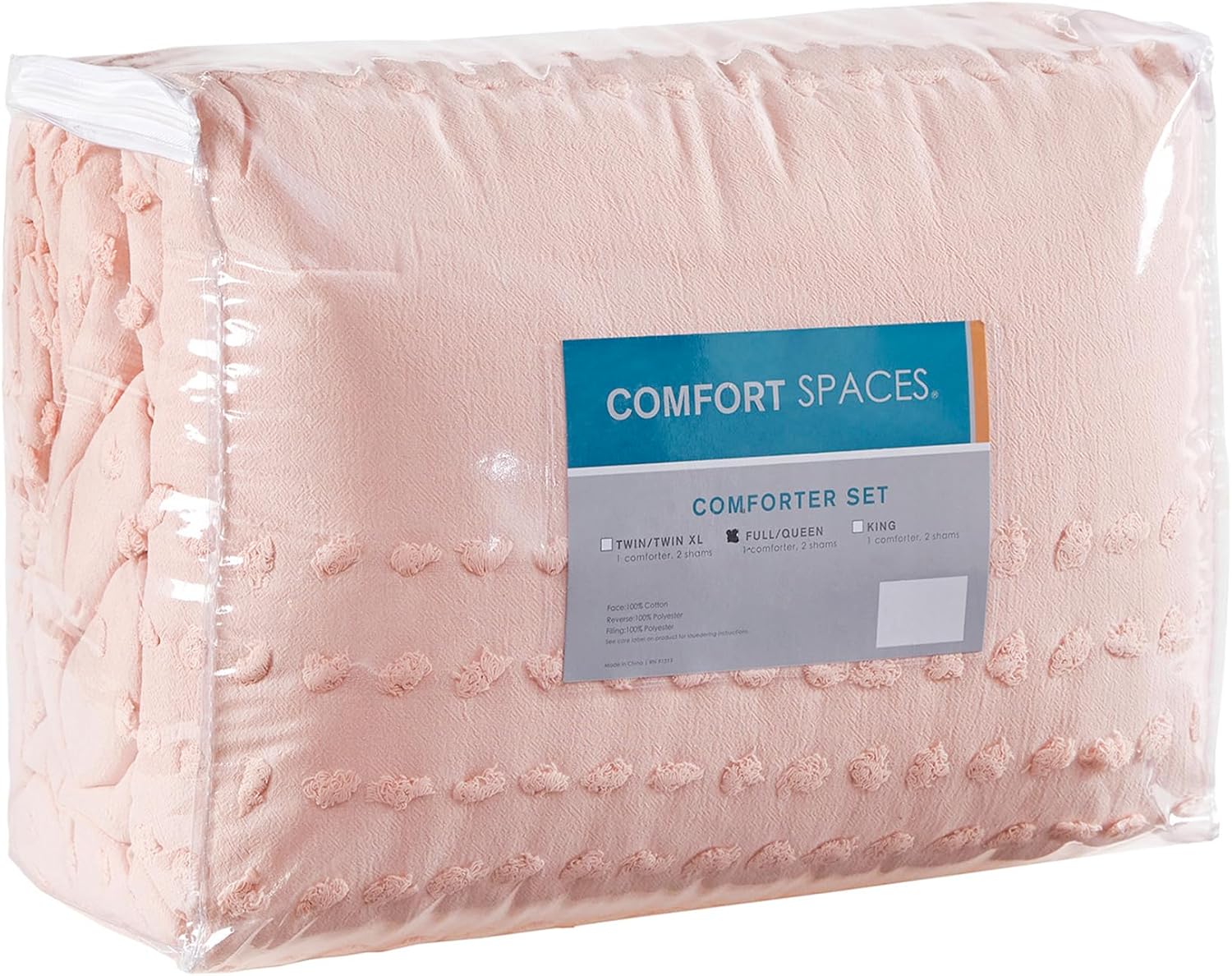 The Comfort Spaces Phillips Cotton Jacquard Comforter Set offers a charming and comfortable update to your bedroom décor. This blush comforter features a striped jacquard fabric woven with cotton dots that add texture and dimension to the face of the bed. A solid microfiber reverse provides additional comfort, while two matching shams with overlap closures on the back complete the jacquard comforter set. The polyester filling provides exceptional warmth and comfort. Machine washable for easy care, this cotton jacquard comforter set creates a cozy and chic look in your bedroom.
