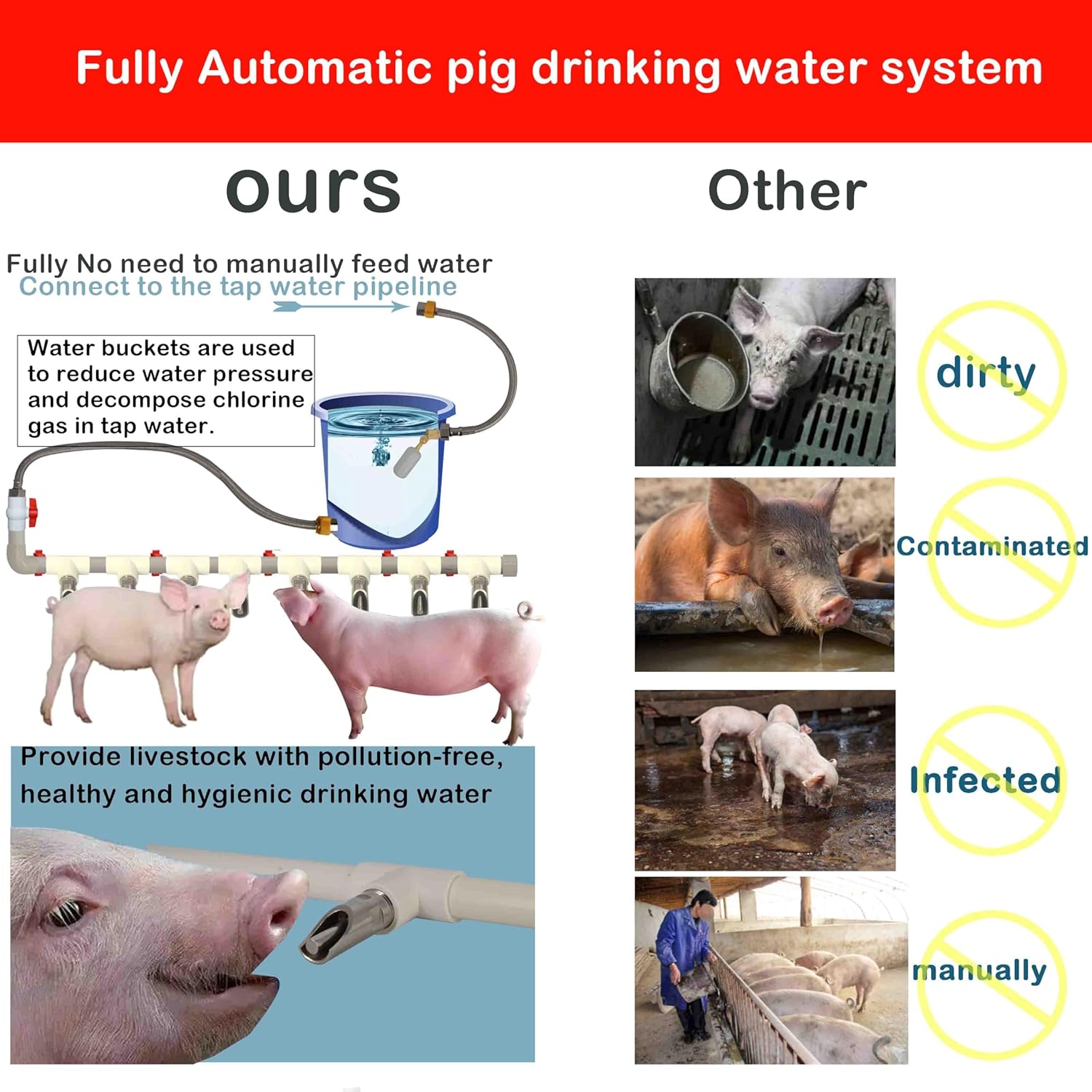 Product name: Automatic Pig Waterer System for Hog Goat Sows Piglets Features: This is a set of Automatic Animal Drinking Water, pipe type Pig Nipple Waterer, Piglets Goat Drinking, including Pig Nipple Waterer, float valve, tee, valve and other pipe fittings Product Advantage: The kit can realize fully Automatic pipe Stainless Steel Pig Waterer Nipples Automatic Waterer, for Hog Goat Sows Piglets
