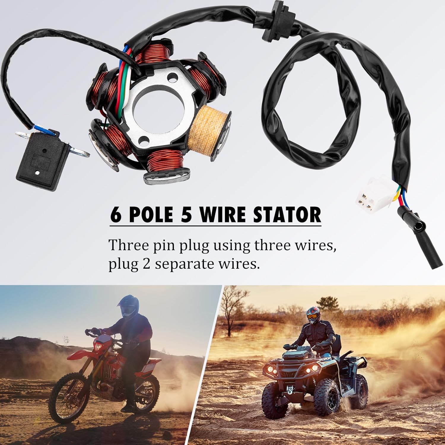 This complete wiring harness kit fits almost Chinese made electric start upright engine 50cc 70cc 90cc 110cc 125cc engines. This Complete electric Wiring Harness kit compatible with Atomik, Pitpro, Hummer, Orion, Xmoto, Lei, DMX, SWD, TDR, DDR, Tommahawk, Monsoon, Grudge, Kazuma, Bull, Trooper, Hunter, Motox, Trojan, Blitz, Crusade, Link, Bigfoot, Kuda, Motoworks, Nitrous, Reign, Fury, Prox, Raider, Zongshen, Loncin, Ducar, Lifan, Thumpster, Thumbstar and other brands. The Quad Wire Harness Kits for GY6 4-Stroke ATV, Coolster, Quad Bike, Dirt Bike, Pit Bike, Go Kart, 4 Wheelers, Scooter,Buggy, Taotao, Motowork, Dune. This complete wiring harness for 125cc atv fits for most of Chinese made 50CC 70CC 110CC 125CC ATV / QUAD and Dirt Bike. Package Includes 1x Rectifier 1x Spark Plug 1x CDI (5Pin AC) 1x Solenoid Relay 1x ATV Stator 6 Coil 1x Quad Wire Harness 1x Ignition Coil with Lead 1x Ignition Switch (with 2 keys) 1x Multi-functional ATV Switch Note: 1.Please check the pictures carefully before buying, especially the pictures of magneto stator. 2.Please check the wiring diagram first before installation,professional installation is highly recommended and false assembly may cause fire on the harness. 3.DO NOT FIT:GY6 engine motorbikes and other Mini ATV / QUAD 150CC 200CC 250CC 300CC with different stator or CDI.