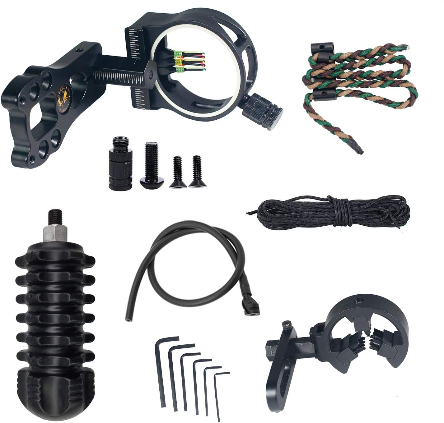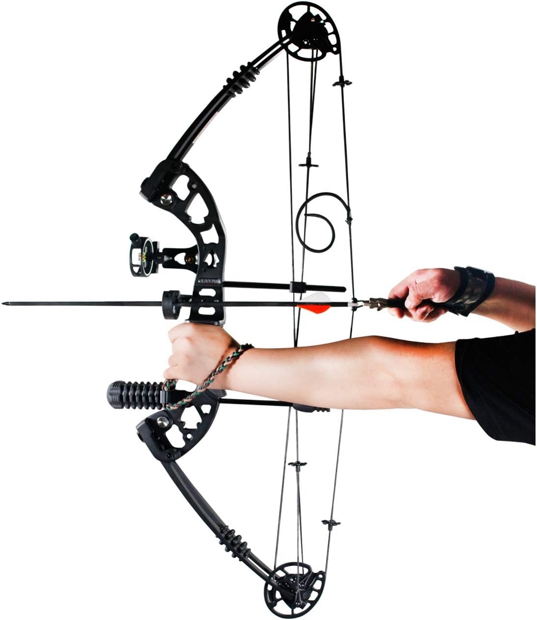 Features: - Right hand bow - Aluminum alloy riser with high intensity -Bow riser and cams are CNC machined - Stainless steel cable guard - Adjustable draw weight and draw length - With String silencer and peep hole Specifications: - Material: Aluminum alloy, fiberglass, carbon fiber - IBO rating: up to 310 fps - Axle-to-axle: 34" - Brace height: 7.5" - Draw weight: 30 - 55lbs - Let-off: 70% - Draw Length: 24" - 29.5" - Bow Weight: 3.7 lbs Package Contents: 1x Compound Bow 12x 31” training carbon mix arrow 1x 5 pin bow sight 1x Stabilizer 2x Brush arrow rest 2x Limb vibration dampers 1x Bow release 1x Braided bow sling with aluminum mounting 1x D-Loop assembly plus 1 meter replacement D loop chord 1x Allen Key set 1x Soft carry case