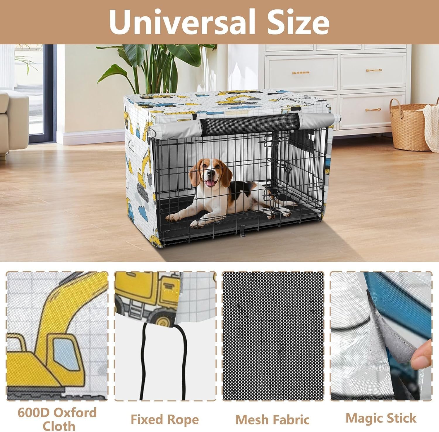 Protection – Made from 600D silver-coated oxford fabric, this water-resistant dog crate cover provides reliable protection against weather conditions, including wind and rain. It prevents your dog from scratching the crate and blocks harmful UV rays.Easy Installation – This dog kennel cover features a user-friendly fastening system, allowing for quick installation without tools. It securely attaches to your dog crate, ensuring it stays in place for continuous protection.Effective Ventilation – Mesh windows on every side of the crate cover allow for steady airflow, keeping your dog comfortable and well-ventilated while inside. This design ensures your pet has a cool and breathable environment.Secure Fit – Equipped with four tie-down straps, the cover stays firmly in place, preventing it from shifting or being blown away. This added stability makes it suitable for outdoor use even in windy conditions.Ideal for Multiple Uses – This versatile dog cage cover is Ideal for both indoor and travel use. Whether you’re at home, on a road trip, or camping, it offers a practical solution for protecting your pet’s crate.