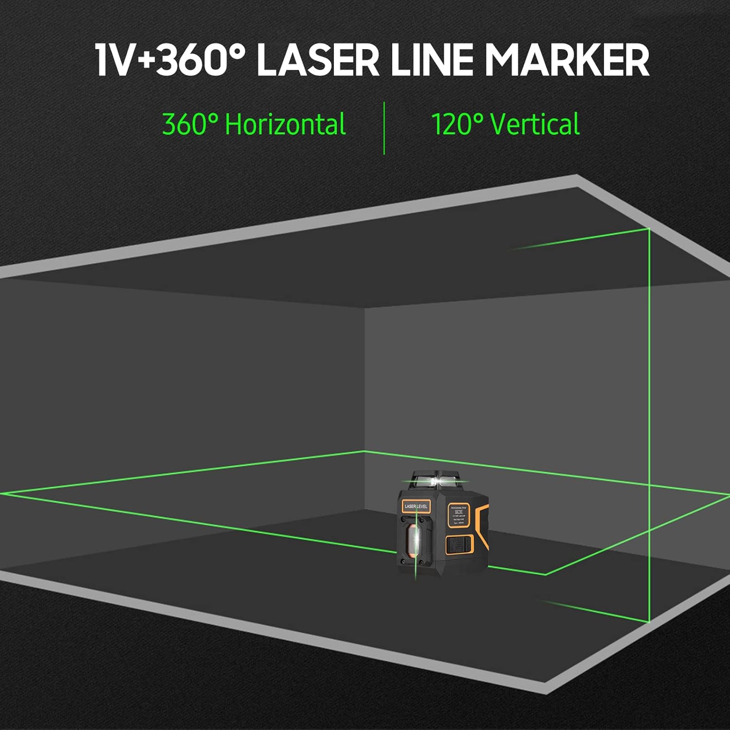 for use. With standard 1/4" mounting thread, can be compatible with many kinds of bracket for using in different workplaces. With magnetic L-shaped plastic bracket, it’s thick and wear resistant, and can be mounted on the wall or absorbed on metal surface. Reable & Portable:4000mAh built-in lithium battery with b endurance, easy to be d via Type-C USB cable; with battery level indicator s for easy use. Compact size and weight, easy storage and portability, the zipper bag is hard and shockproof. Premium Quality:Using high-quality source, which is cold/ high temperature resistant, with long service life and uniform . Adopting integrated molding process, the plastic covered shell is more High quality and tougher; with IP54 rating, it is dustproof and fall resistant. Note:1. Please keep the lock switch at lock state when moving or storing the level.2. Do not stare into the beam or illuminate towards human.3. Size and color may be sly different because of manual measurement and different conditions. Thanks for understanding. Specifications: Beam Color: Green Material: ABS length: 505-550nm Maximum Output: 1mW Working : 30m/ 98ft Leveling Accuracy: 1.5mm at 5m distance, 3mm at 10m distance Beam Emission Angle: 360°/ 120° Leveling/ Compensation : 4° ± 1° IP Rating: IP54 Class: Class Ⅱ Working Temperature: -10~50℃ Built-in Battery: 3.7V 4000mAh Lithium Battery Item Size: 85 * 53 * 96mm / 3.35 * 2.09 * 3.78in Package Size: 18.5 * 17.5 * 9.3cm / 7.28 * 6.89 * 3.66in Package Weight: 653g / 1.44lbs Package List: 1 * Level 1 * Bracket 1 * USB Cable (Type-C) 1 * Zipper Bag 1 * User Manual (English)