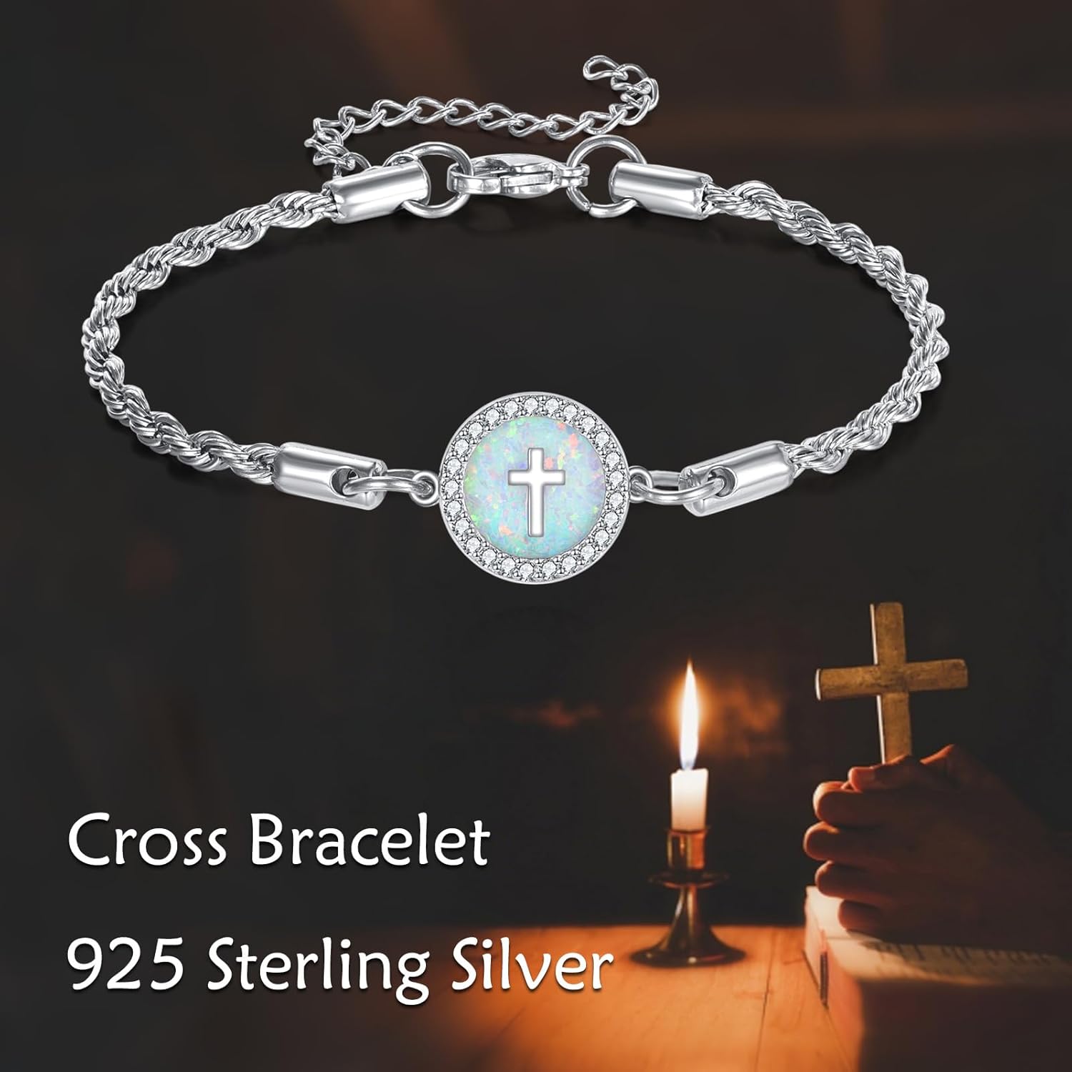 Cross Opal Urn Bracelet for Ashes Stelring Silver Cross Cremation Keepsake Jewelry Gift for Women
