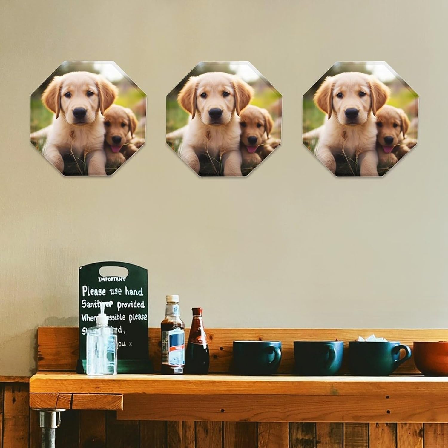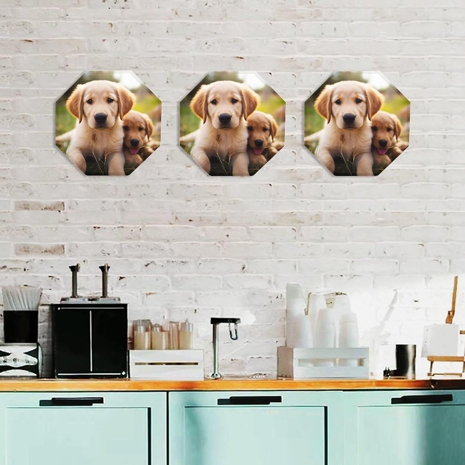 This modern abstract wall decoration brings a luxurious feel to your walls, creating a stylish home décor. It can be easily installed on any blank wall, adding texture and depth to your home.Personalized signs are perfect for kitchens, bathrooms, doors, garages, TV walls, living rooms, and other spaces. They can be hung in living rooms, bedrooms, hallways, offices, meeting rooms, and waiting areas. Use them on manhole covers, partition walls, or any other small, unique sign you desire.Our octagonal iron plate is the perfect gift because each of our octagonal iron Cute Golden Retriever Puppy plates features a unique pattern, suitable for any occasion. The unique pattern adds a distinctive touch.Come and choose the decorative mural that suits you best!