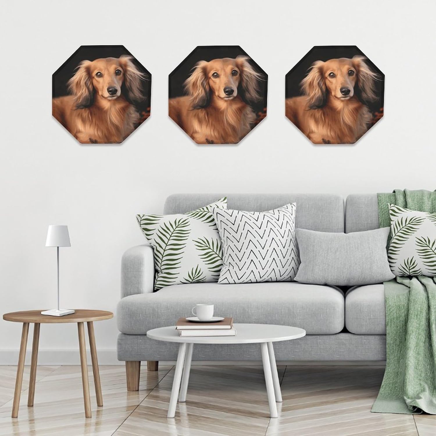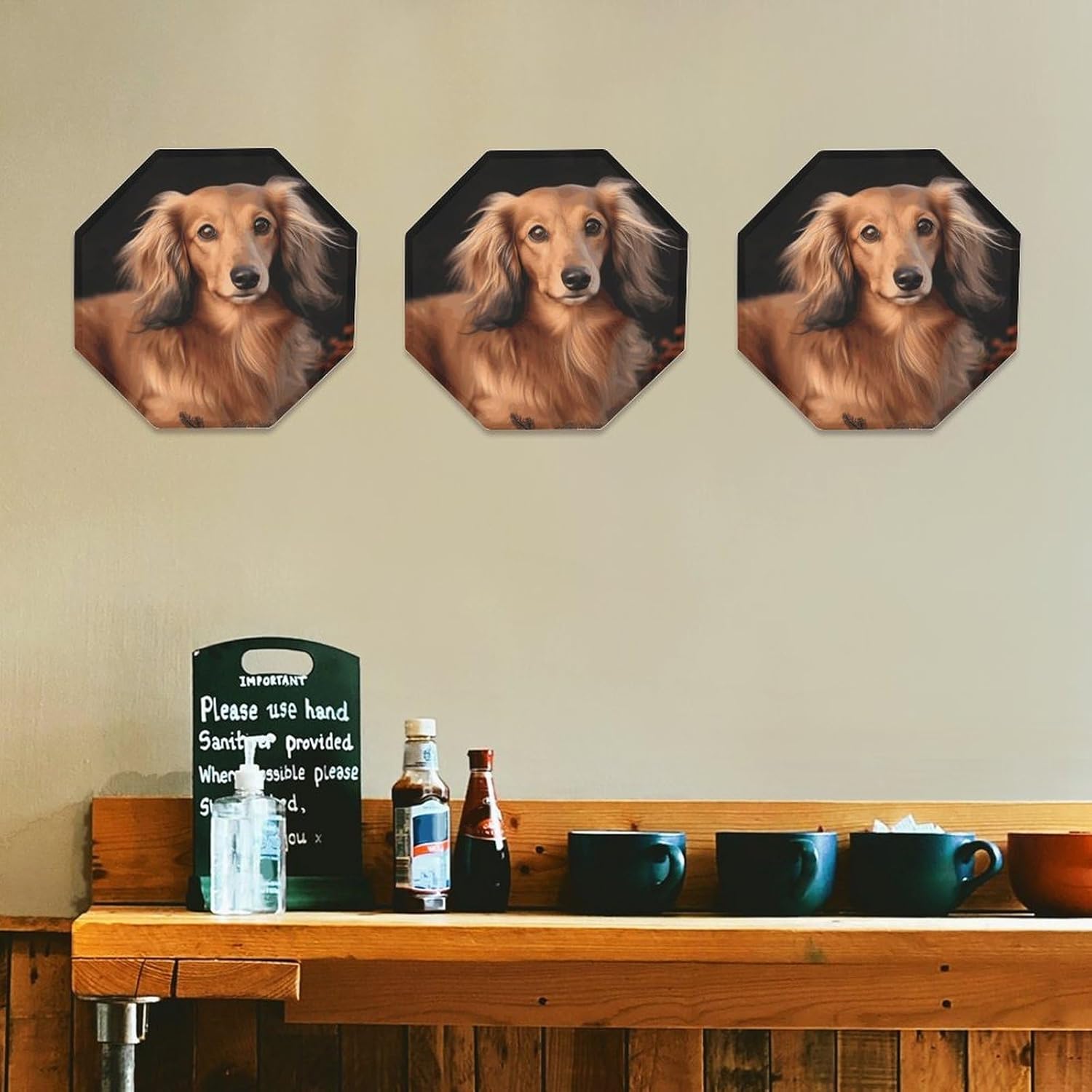 This modern abstract wall decoration brings a luxurious feel to your walls, creating a stylish home décor. It can be easily installed on any blank wall, adding texture and depth to your home.Personalized signs are perfect for kitchens, bathrooms, doors, garages, TV walls, living rooms, and other spaces. They can be hung in living rooms, bedrooms, hallways, offices, meeting rooms, and waiting areas. Use them on manhole covers, partition walls, or any other small, unique sign you desire.Our octagonal iron plate is the perfect gift because each of our octagonal iron Long Haired Dachshund plates features a unique pattern, suitable for any occasion. The unique pattern adds a distinctive touch.Come and choose the decorative mural that suits you best!
