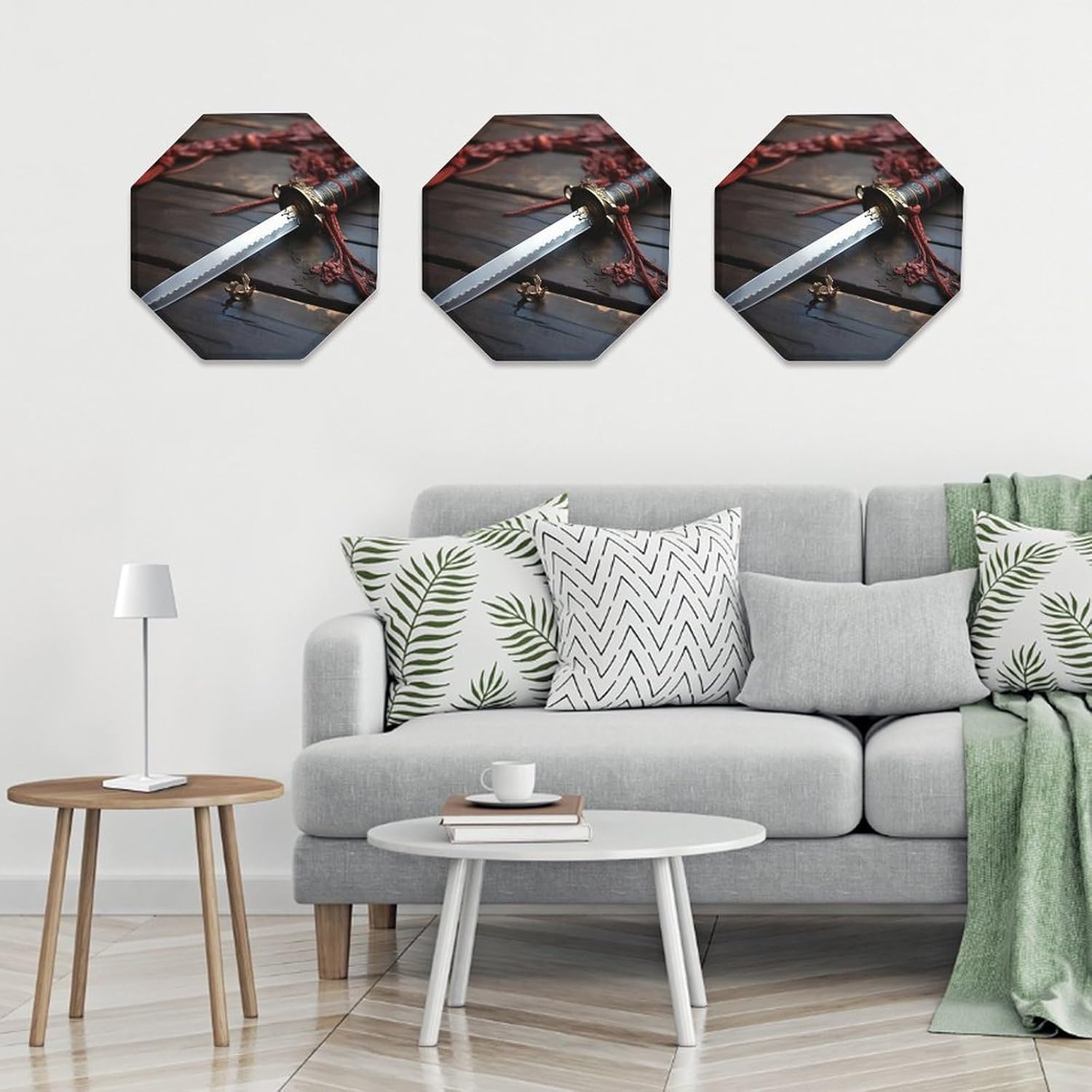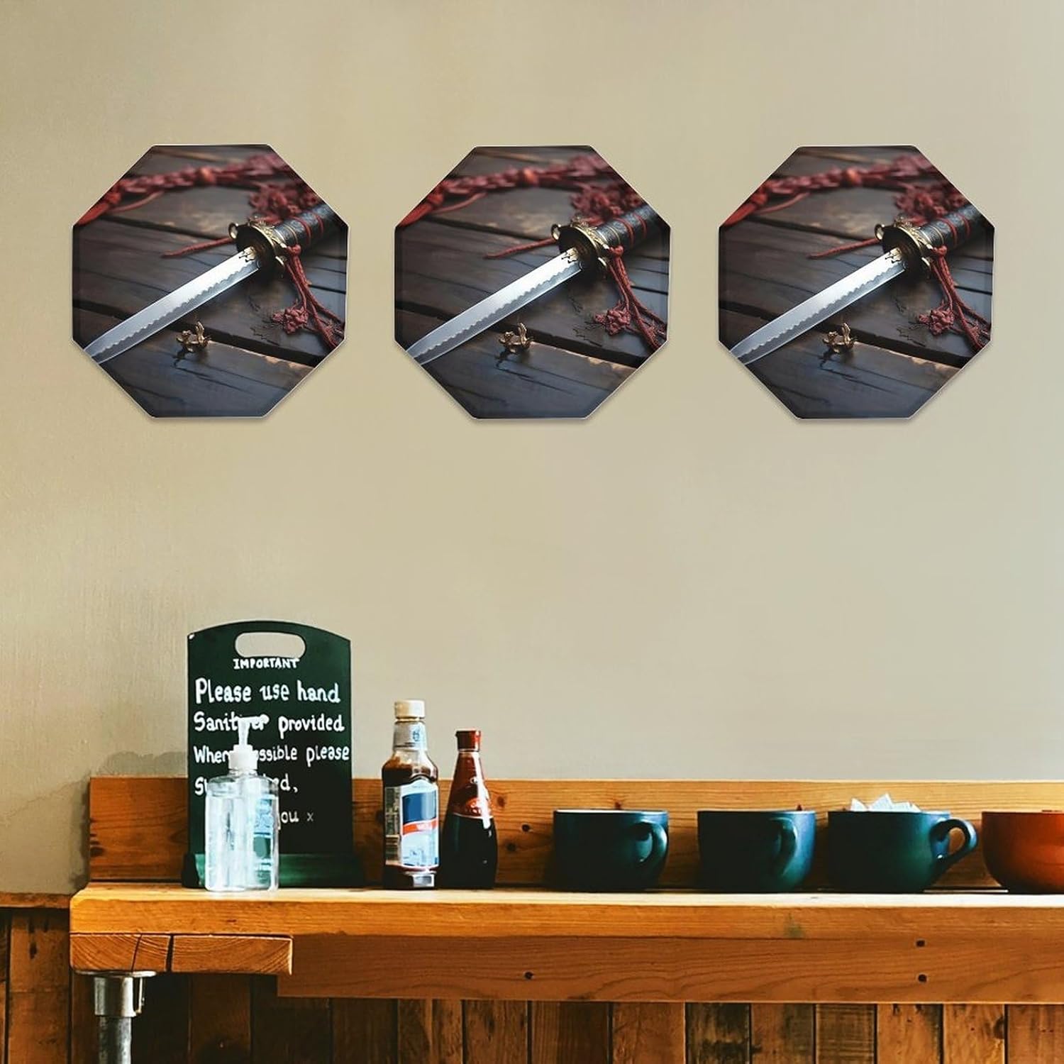 This modern abstract wall decoration brings a luxurious feel to your walls, creating a stylish home décor. It can be easily installed on any blank wall, adding texture and depth to your home.Personalized signs are perfect for kitchens, bathrooms, doors, garages, TV walls, living rooms, and other spaces. They can be hung in living rooms, bedrooms, hallways, offices, meeting rooms, and waiting areas. Use them on manhole covers, partition walls, or any other small, unique sign you desire.Our octagonal iron plate is the perfect gift because each of our octagonal iron Japan Samurai Sword plates features a unique pattern, suitable for any occasion. The unique pattern adds a distinctive touch.Come and choose the decorative mural that suits you best!