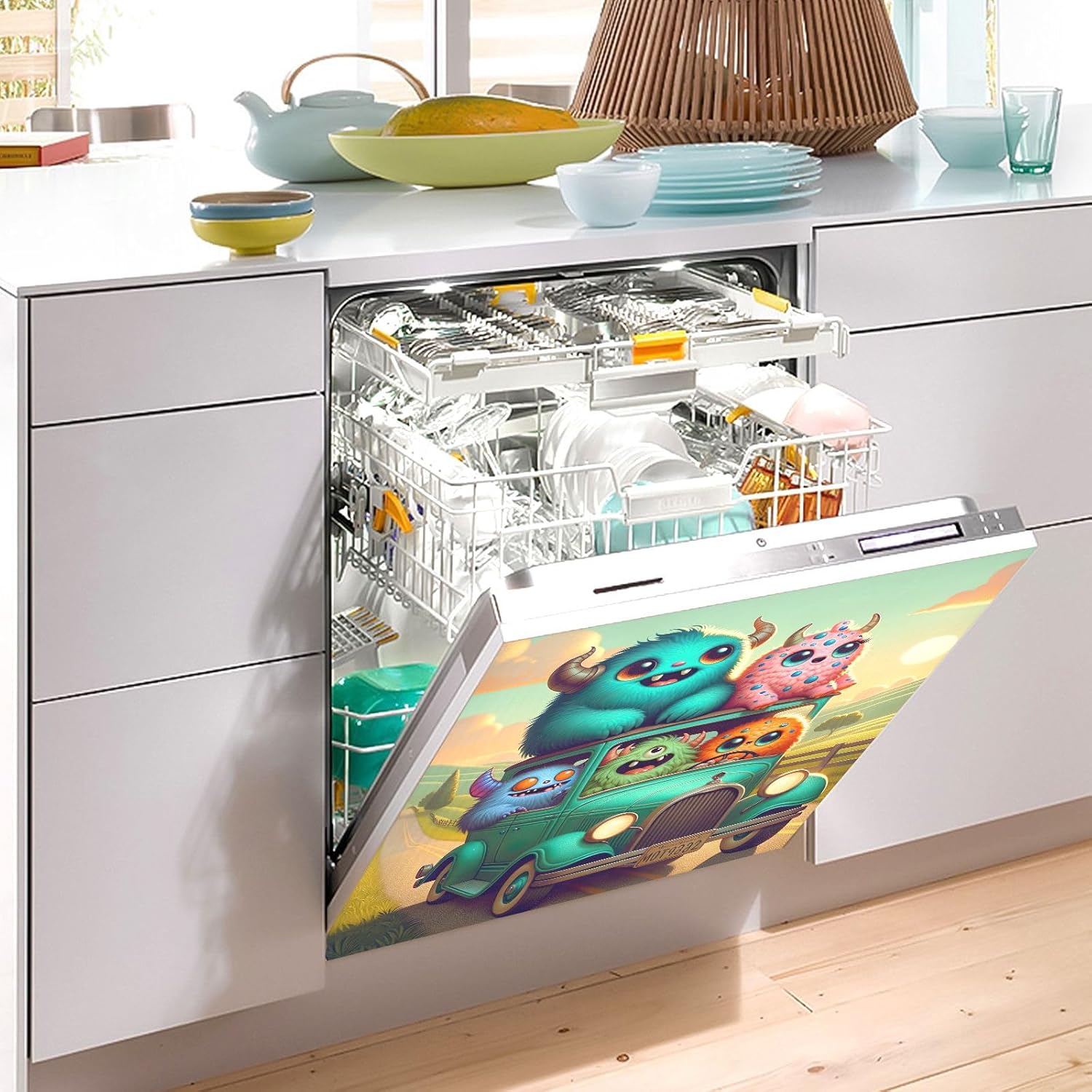 Material: PVC Surface with Magnetic BackingSize: 23x26in / 58.42x66.04cm, Thickness 0.5mmProduct Description: Embrace functionality and flair with this Dishwasher Cover Magnetic, a versatile and removable solution that leaves no residue behind. Designed to adhere to iron and other metallic surfaces, this sturdy yet detachable accessory is perfect for sprucing up your kitchen dishwasher, adorning your refrigerator, or serving as a decorative magnet. It doubles as a protective shield, preserving the exterior of your appliances from scratches and dings.DIY Design: Embodying the spirit of DIY, this magnetic cover can be customized to fit any size you need. It's not just about aesthetics; it's a practical addition to your home. Cleaning is a breeze—simply wipe down with a damp cloth or hand wash with cold soapy water and air dry.Service: We are committed to delivering high-quality products that cater to our customers' needs. Should you encounter any issues, please feel free to reach out. Our dedicated support team is always on standby to assist you.Suitable for: Dishwashers, Refrigerators, Washing Machines, or any appliance with a metallic exterior, any magnetically receptive area.Product Tip: Our magnetic covers are shipped rolled. To ensure optimal magnetism, simply unroll and reverse-roll the product before application.