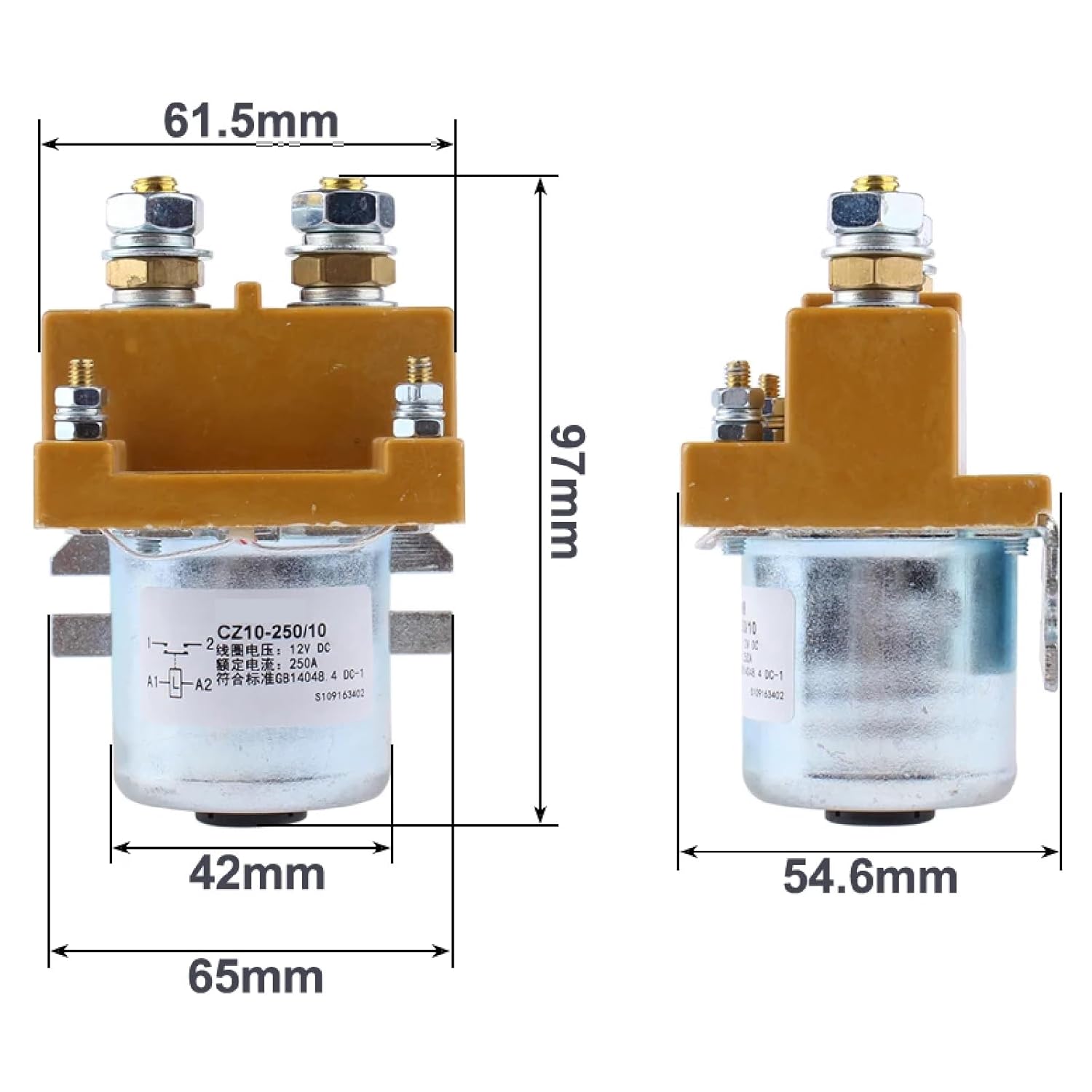 The CZ10 Series DC Contactor Switch is a reliable and high-performance switching solution designed for automotive and industrial control applications. Available in three current ratings — 80A, 150A, and 250A — this 1NO (normally open) contactor operates on 12V DC, making it well-suited for cars, forklifts, golf carts, and a wide range of control systems. Its robust construction features a durable insulated housing and sturdy brass terminal posts secured with locking nuts, ensuring solid electrical connections even under demanding conditions. The compact cylindrical body with mounting tabs allows for straightforward integration into tight spaces and existing electrical setups. Engineered for quick response switching, this contactor helps enhance system efficiency and operational safety. Whether you need the CZ10-80 for lighter loads or the CZ10-250 for heavy-duty current handling, this series offers a versatile and dependable solution to meet your specific power switching needs. Please verify the current rating and voltage requirements of your application before selecting the appropriate model.