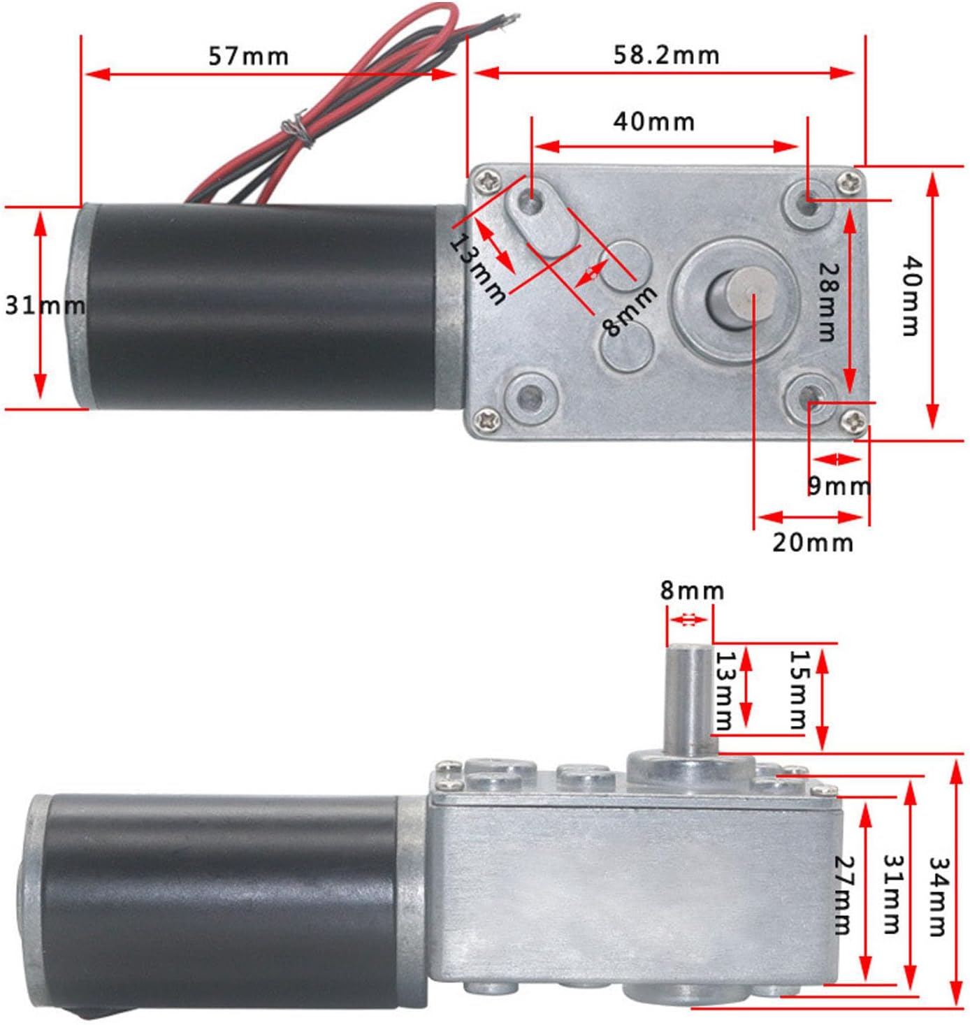 Specification: ItemType: GearedMotor Model: 5840-31ZY WorkingVoltage: 12V ShaftLength: Approx. 15mm / 0.6in Shaft: Approx. 8mm / 0.3in DCmotorregulatorCWandCCWcontrol Model: CCM2 WorkingVoltage: DC10V-30V ControlPower: 12Vx3A=36W, 24Vx3A=72W, >24V, maximum120W RatedCurrent: 3A MaximumCurrent: 5A PWMPulseWidthAdjustmentRange: 5%-95% Potentiometer: valueB10K, wirelengthisapprox. 20cm / 7.9in, openingapprox. 8mm / 0.3in OutputVoltage: Aboutoftheinputvoltage Drive: Approx. 74x47x28mm / 2.9x1.9x1.1in Potentiometerisusedforspeedregulation PackageList: 1xMotor 1xGovernor 1xCWandCCW 1xKnob 1xWasher 1xBracket 4xMountingScrew Note: 1. Whensolderingisrequiredonthepositiveandnegativemotorterminalsofthepowersupply, thetemperatureofthesolderingironis340℃±40℃, andtheheatingtimeislessthan3s. 2. Themaximumbearingcapacityofthegearis70KG, blockingisforbidden, andthemotormaybeburntifitisblockedforlongtime. 3. Wheninstallingthemotor, ifthescrewistoolong, itwillcausebetweenthemotorandtherotor, therebyaffectingthecharacteristics.