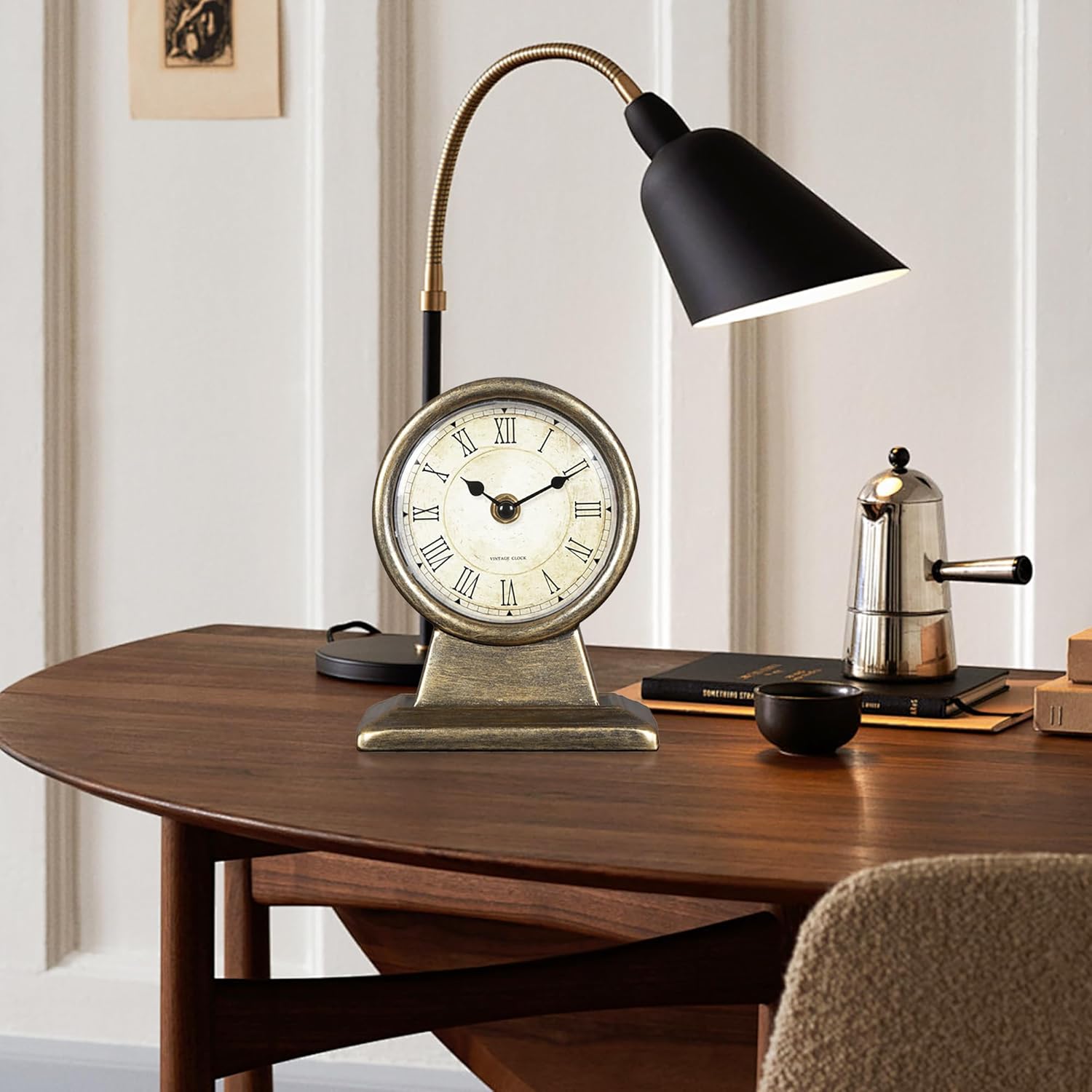 QIYAODECO Classic Vintage Desk Clock - and Decorative Shelf Clock,Silent Non-Ticking Clock with Distressed Metal Frame for Office, Living Room or Bedroom Wonderful accent to your home that will compliment your rustic design style. Our vintage style desk clock makes a sophisticated addition to any room. Our farmhouse shelf decor is both functional and decorative; it’s the perfect ornate desk clock for a fireplace mantel, shelf, desk, or farmhouse table decor.