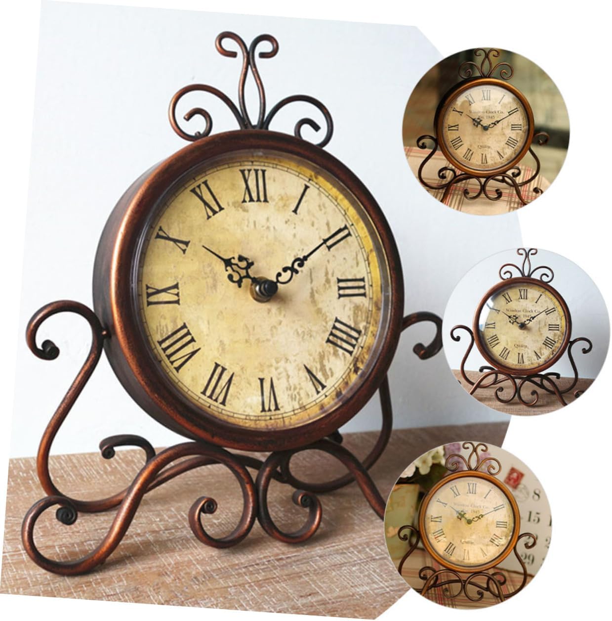 Package List 1 x Desk Clock Features -Product Info:Retro clock - Size: About 28.00X24.00X5.00cm/11.00X9.43X1.97in antique tabletop clock - Material: Iron, glass retro table clock - Creative and retro desktop decorative clock is perfect for cafe shop, club, hotel, bedroom, living room decoration decorative clocks for living room decor. - This retro clock decor is made of iron, glass material, which is sturdy, and rustic clock. - Suitable for using on many occasions, such as bedroom, living room, study room, office and more decorative mantel clock. - antique mantel clocks - The reasonable size to create a good impression and display its retro and elegant look mantel clocks. - Combination of traditional and modern technology, very suitable for many furnishing styles shelf clocks for living room decor.Goods Descriptionrustic desk clock Chic appearance look, well-made, decorative and practical, looks conspicuous in your nightstand.vintage desk alarm clock This item is a retro silent desktop clock ornament.clock vintage Featured by creative and delicate design, it can not only show the time, but also be an excellent decoration for any room