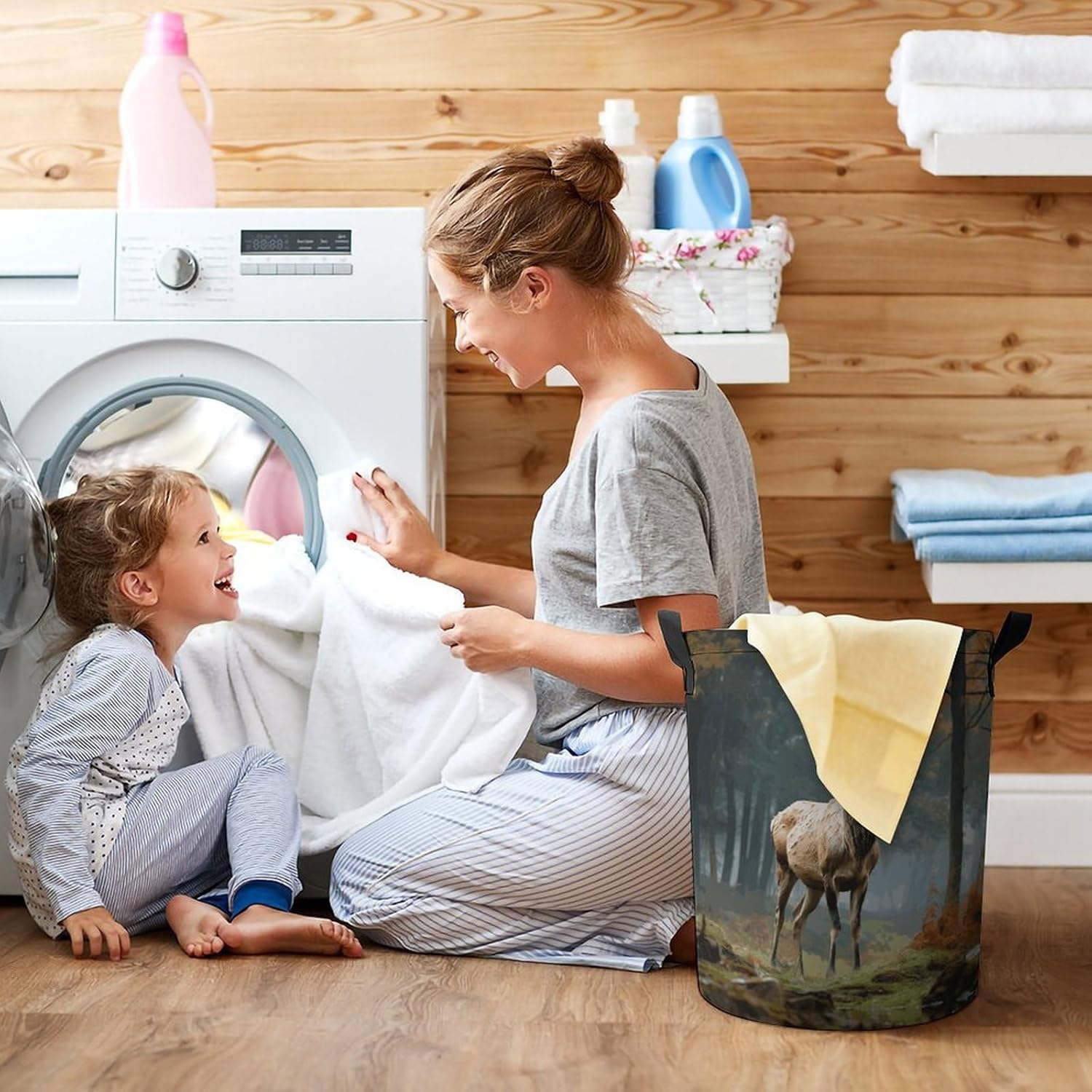 This large collapsible laundry basket is here to transform your home organization. Made from smooth Oxford cloth with a water-resistant coating, it handles damp towels and soiled clothes without absorbing moisture or retaining odors. The drawstring closure adds an extra layer of protection, keeping your items clean and dust-free whether it’s placed in your walk-in closet or a hotel bathroom. When you’re done, it folds down to a slim profile that fits easily in a storage bin or under the bed, making it perfect for small apartments, campervans, and vacation rentals.This cute laundry hamper blends functionality with a playful, stylish design that complements any decor. Measuring 13.8 inches in diameter and 17.3 inches in height, it has plenty of room for a family’s daily laundry, while its lightweight build means you can carry it with one hand thanks to the sturdy side handles. Whether you’re tossing in workout gear after the gym, stowing away extra blankets for guests, or packing it for a weekend trip, it adapts to your needs effortlessly.For anyone who loves to explore, this travel laundry bag is a game-changer. No more mixing dirty clothes with clean ones in your suitcase—simply toss your used garments into this bag, cinch the drawstring, and keep your luggage organized. Its foldable design means it takes up virtually no space when empty, so you can tuck it into a backpack or carry-on without adding bulk.Whether you’re staying in a hotel, camping in a campervan, or settling into a vacation rental, this bag keeps your belongings neat and tidy, making every trip stress-free.