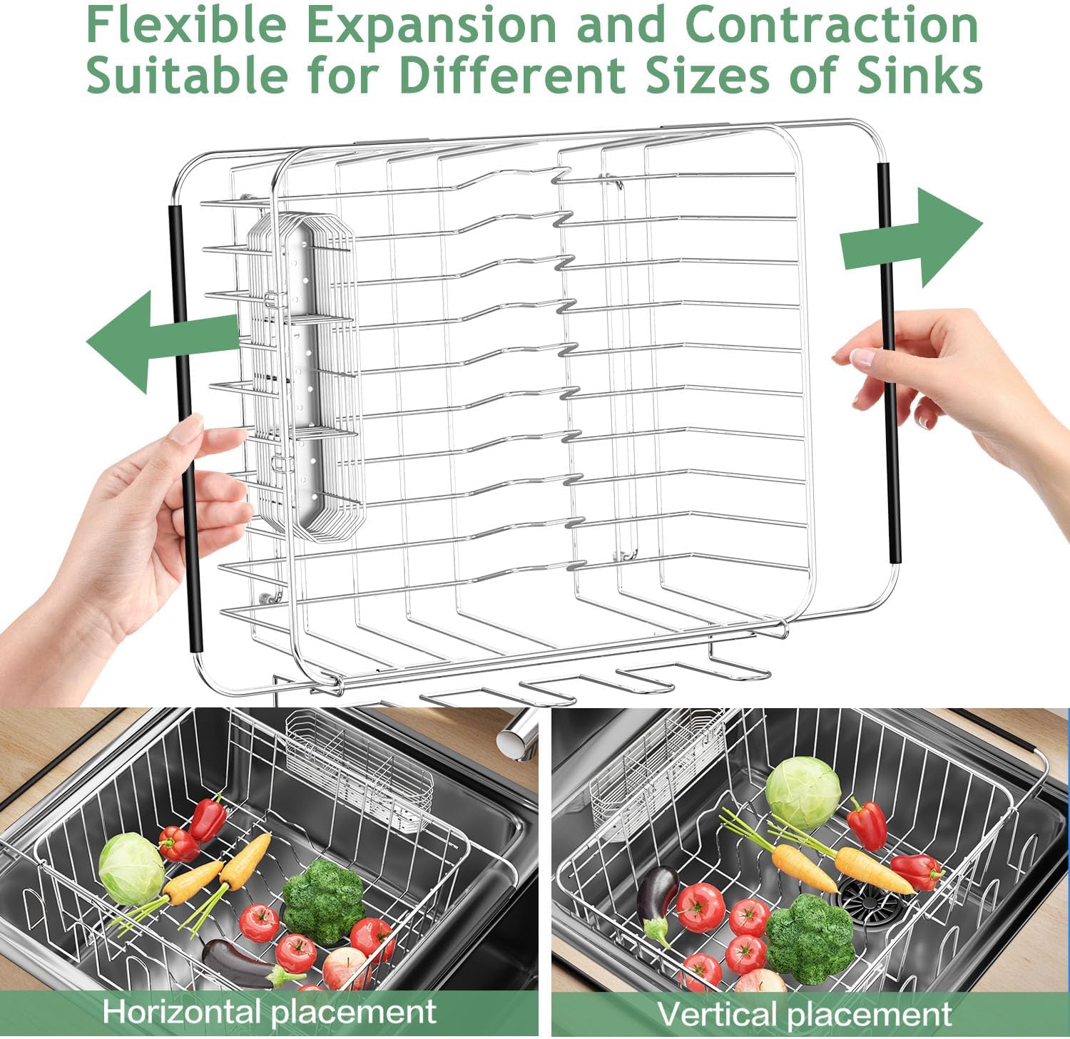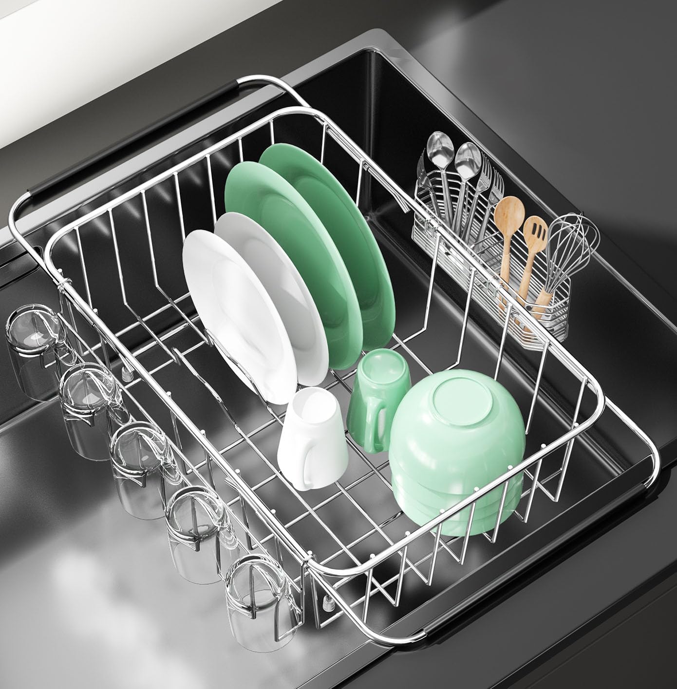 | Additional Features | 304 Stainless Steel Silverware Holder, Dishes Slot Available, Fit most sinks, Non-slip Adjustable arm, Rustproof |