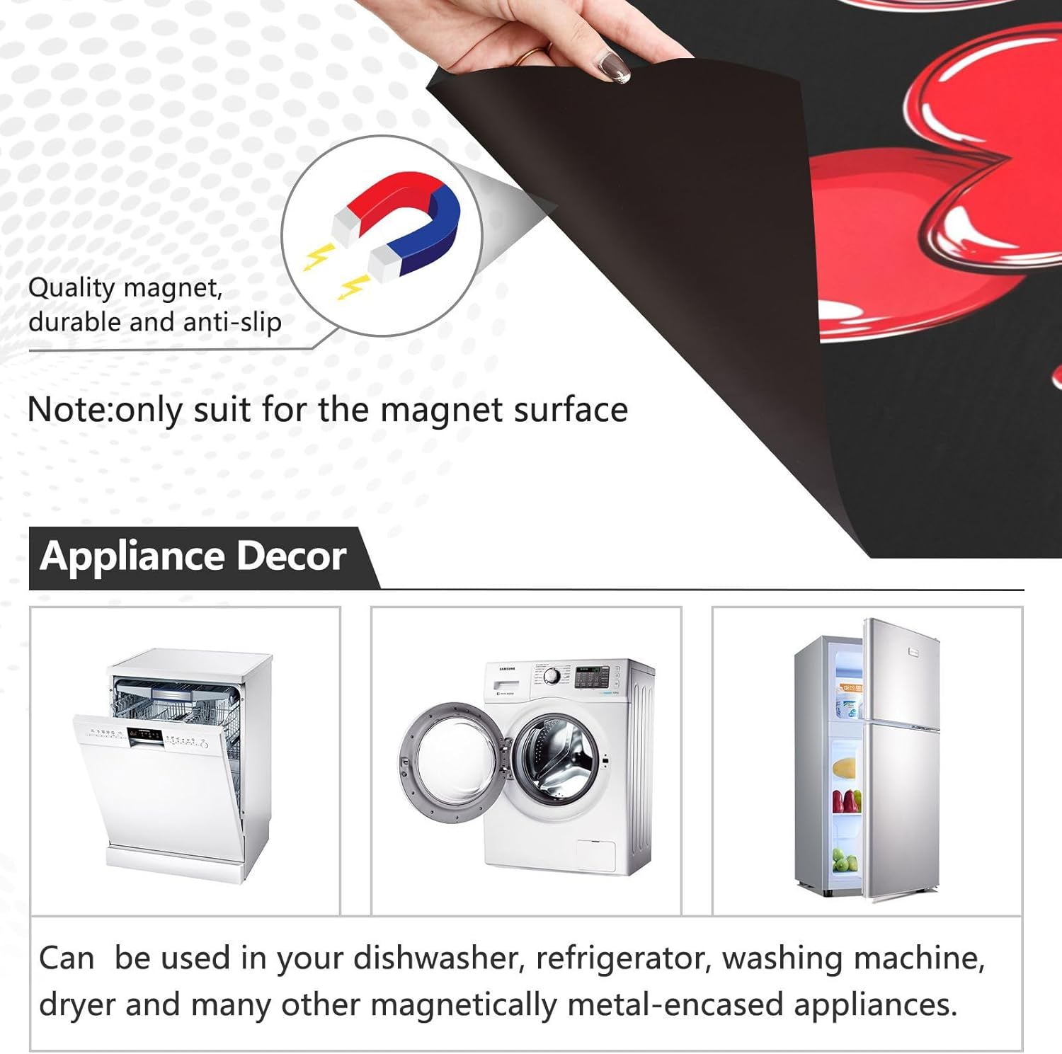 Decorate your kitchen life!This magnetic dishwasher cover is a work of art, decorating your kitchen art, with a sense of fashion and art, highlighting your quality life!Size in 23 x 26 inches. This size fits most dishwashers.Cut it to your own size to fits your need.FeatureWaterproof, heat resistant, scratch and tear resistant. Magnetic stickers hide scratches, dents or other unsightly marks.Magnetic MaterialMagnetic sticker will not fall from magnetic dishwasher and disassemble easily.Protect the dishwasher from scratches, it can also decorate your kitchen home.Please NoteMagnetic dishwasher cover is made of PVC+PET, only suit for the magnet surface.Install: Trim the proofreading position, the magnetic force on the back will stick to it.Ideal GiftYour beloved one will be happy when you give him/her this dishwasher magnet cover gift on the special days like Housewarming Day, Mother's Day, Father's Day, Birthday, Halloween, Thanksgiving, Christmas, New Year.
