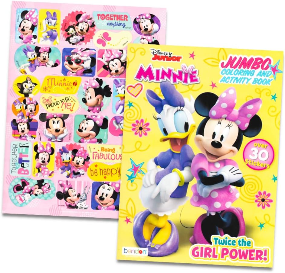Disney Minnie Mouse Coloring Book Set -- 3 Pack Coloring Books with Stickers (Party Supplies Pack). Includes 3 deluxe Disney coloring books featuring Minnie Mouse and her friends -- Mickey Mouse, Daisy Duck, Sofia, Doc McStuffins and many more. Includes of 120 Minnie Mouse stickers. Perfect as Disney Minnie Mouse party supplies and party favors. These Minnie Mouse coloring books are filled with games, mazes, puzzles and activities. Officially licensed Disney Minnie Mouse toys and games products.