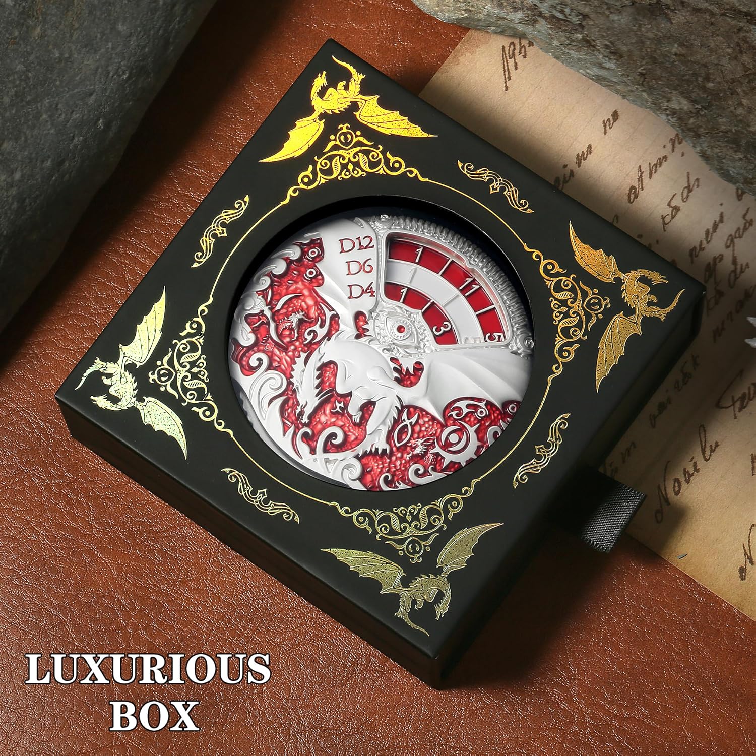 1*DNDND 7pcs Matt Red DND Metal Dice with Metal Gift Case 1*DNDND Dragon Roulette Spinner Dice with Gift Box
