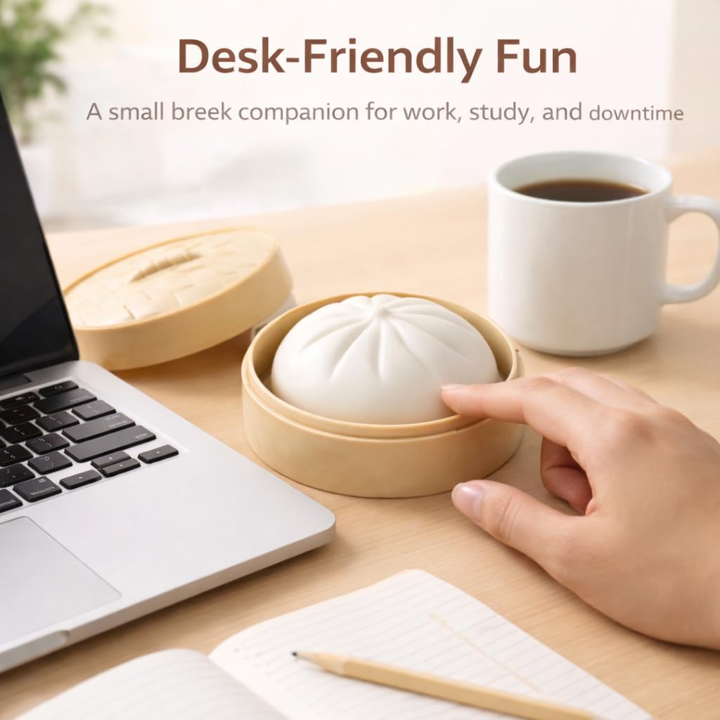 Add a touch of personality to your workspace with this dumpling squishy displayed in a traditional steamer basket. Inspired by the look of freshly steamed dumplings, the design combines decorative food styling with the tactile feel of classic squishy toys. The soft texture makes this squishy dumpling toy enjoyable to hold and squeeze during desk breaks or while organizing a workspace. The dumpling shape creates a combination of decoration and interaction similar to popular squeeze toys. For those who prefer larger tactile objects, styles such as giant dumpling squishy, dumplings squishy, and squishy dumplings offer a fuller squeeze experience while maintaining the dumpling-inspired appearance. Whether used as a decorative desk item or displayed among other squishy toys, this dumpling design blends novelty styling, texture, and modern visual appeal.