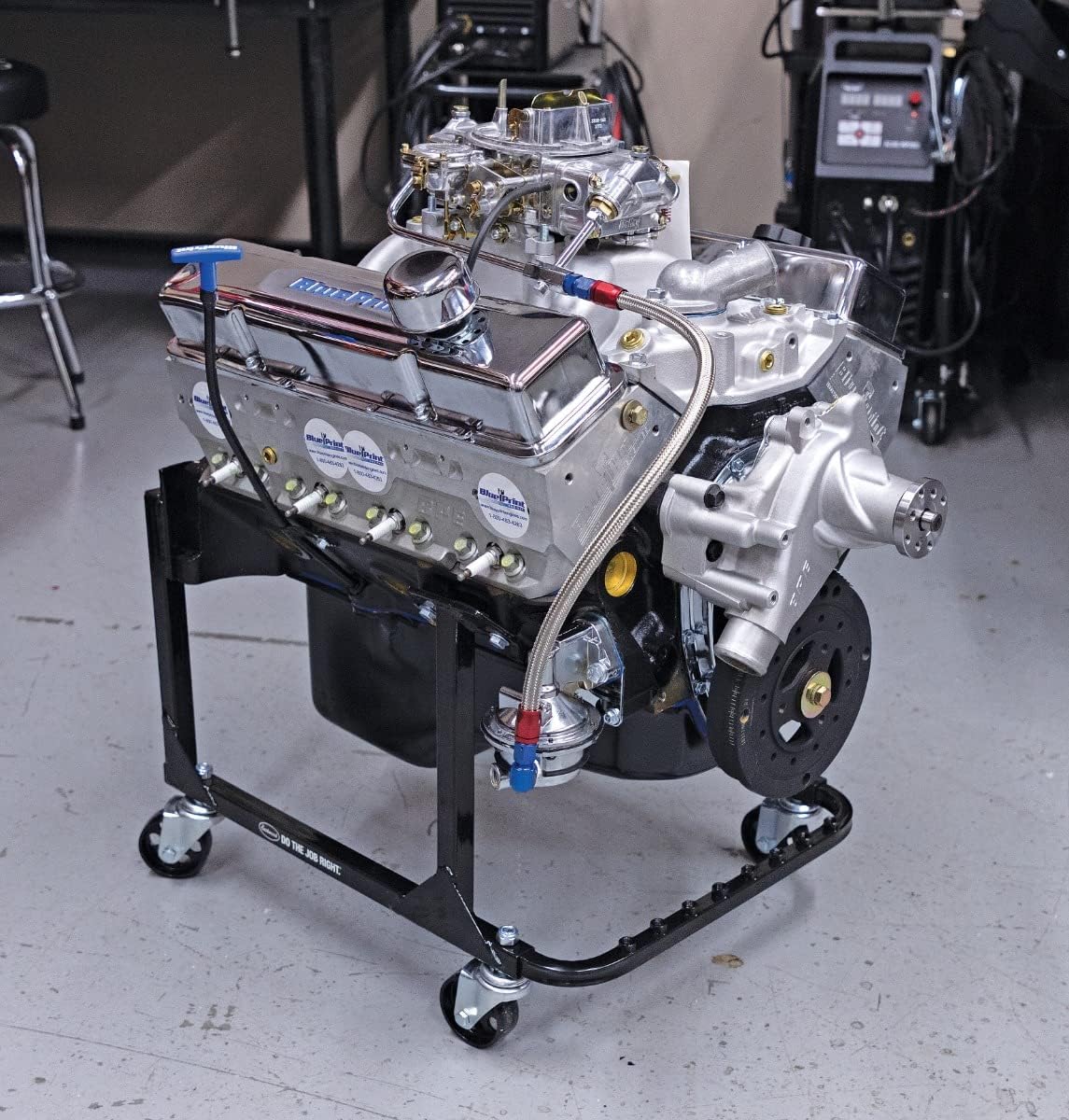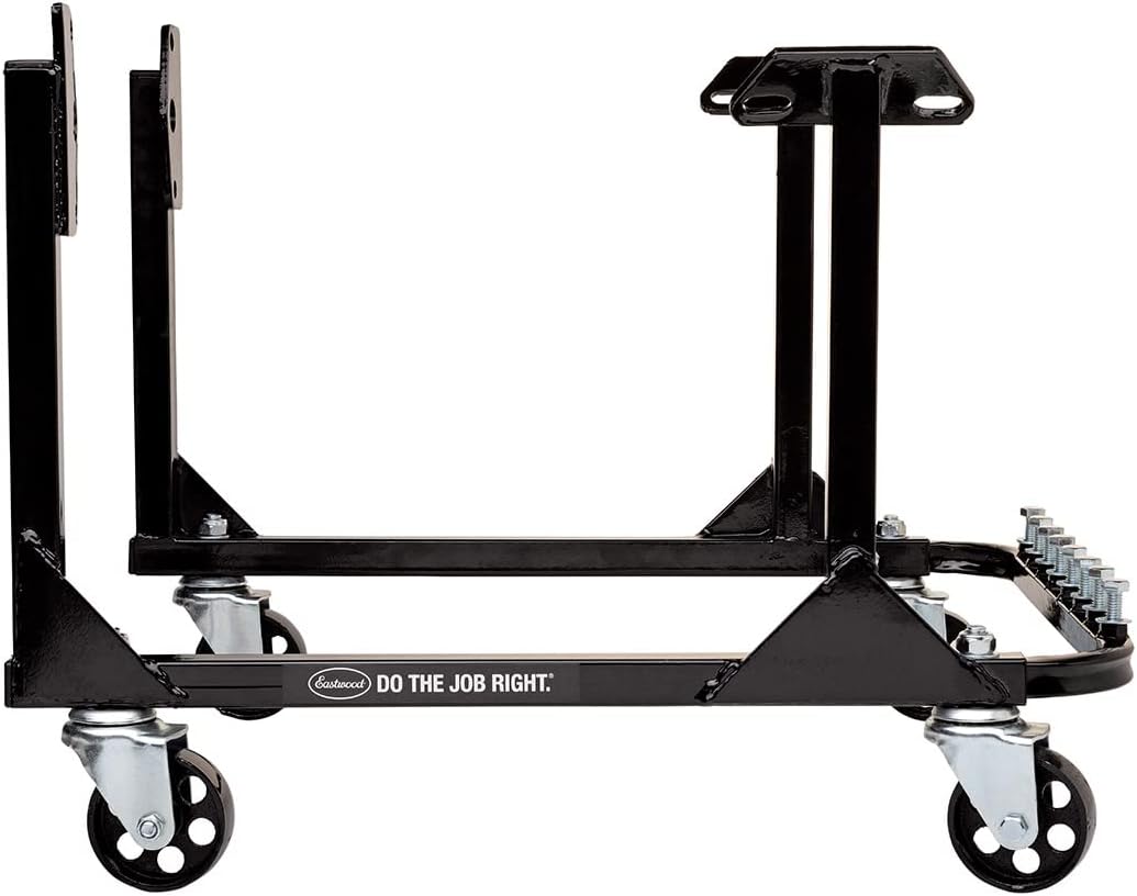 The Eastwood Engine Storage Stand features compatibility with GM Small Block and Big Block Engines.The low-profile design allows the engines to be stored in tight, compact areas. Steel, ball bearing Swivel Casters and a rugged steel frame will support up to a total loaded weight of 750 lbs. [340 kg.] yet is completely portable for use as a long-term storage of engines.SpecificationsApplication: Small and Big Block Engines (Not for LS engines) Construction: All Steel with Steel Casters Weight Capacity: 750 lbs. [340 kg] Finish: Black Powder Coated Dimensions: 18"H x 19"W x 24"D Assembled Weight: 16 lbs. [7.25 kg] Engine to Stand Bolts: IncludedContents(1) Eastwood Engine Storage Stand with Casters and Hardware