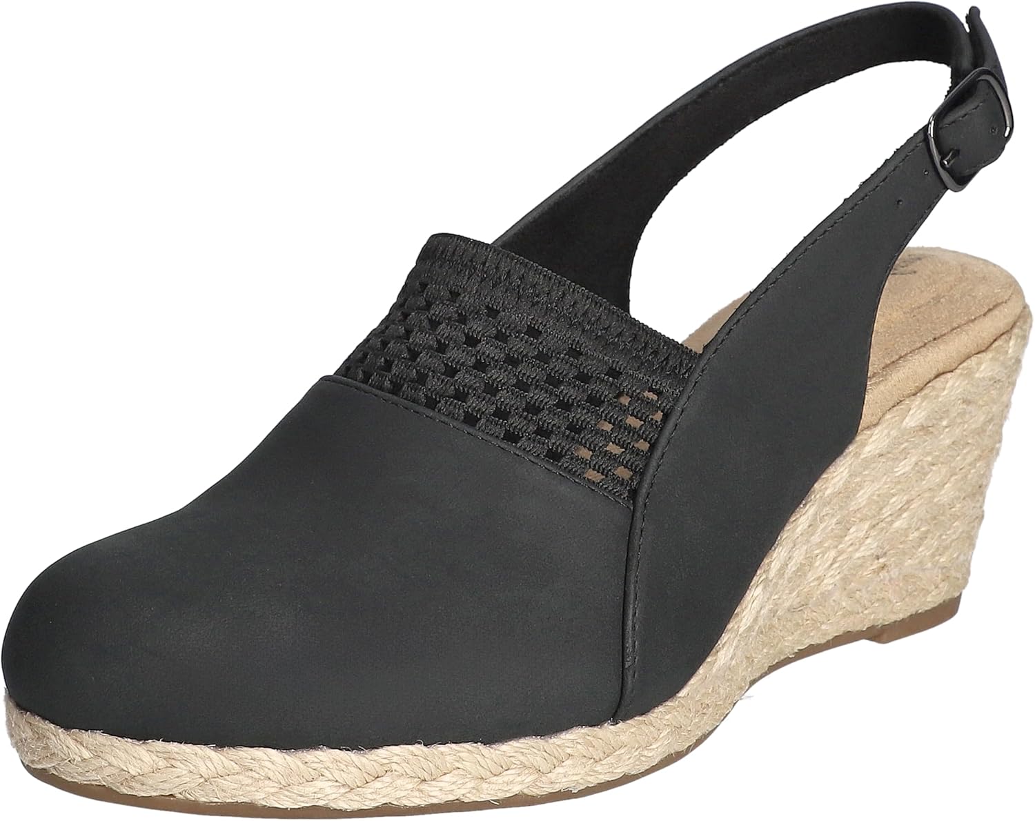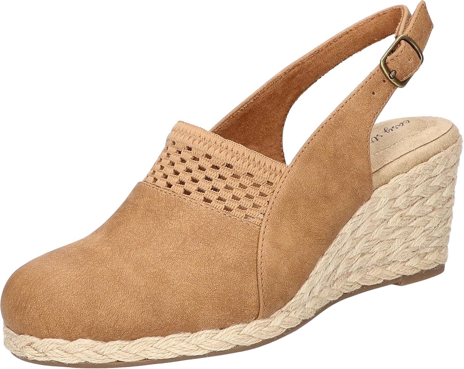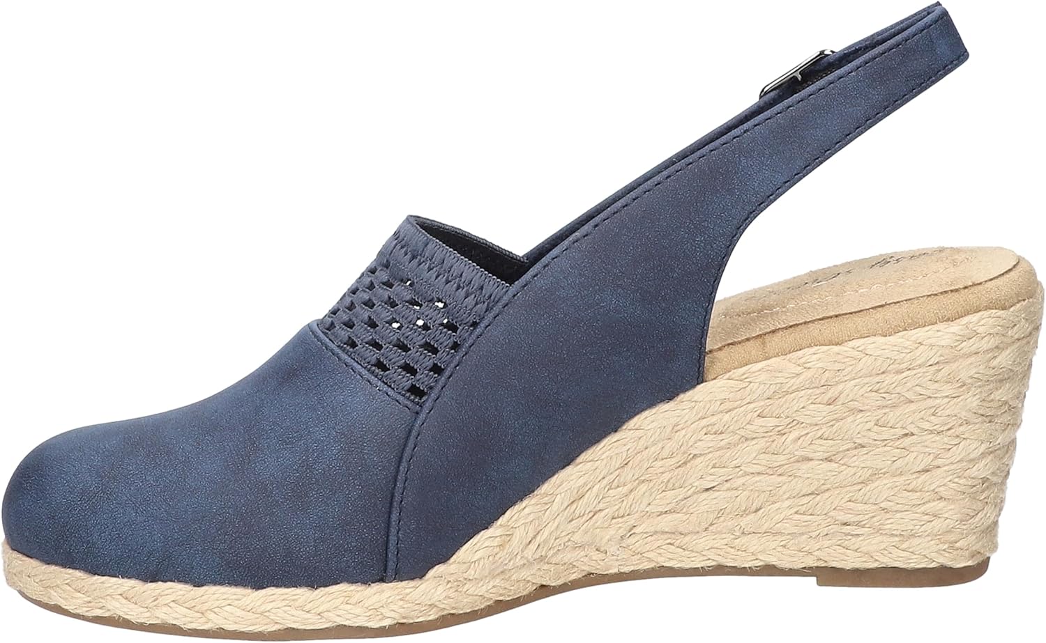 Experience a touch of island charm with the Aloha from Easy Street. This versatile slingback features a closed-toe upper with perforated stretch detailing vamp. Perfect for a relaxed summer vibe. The flexible espadrille wedge with the adjustable buckle ensures a personalized fit. Finished with a cushioned insole, this everyday style wedge is perfect for all-day wear.