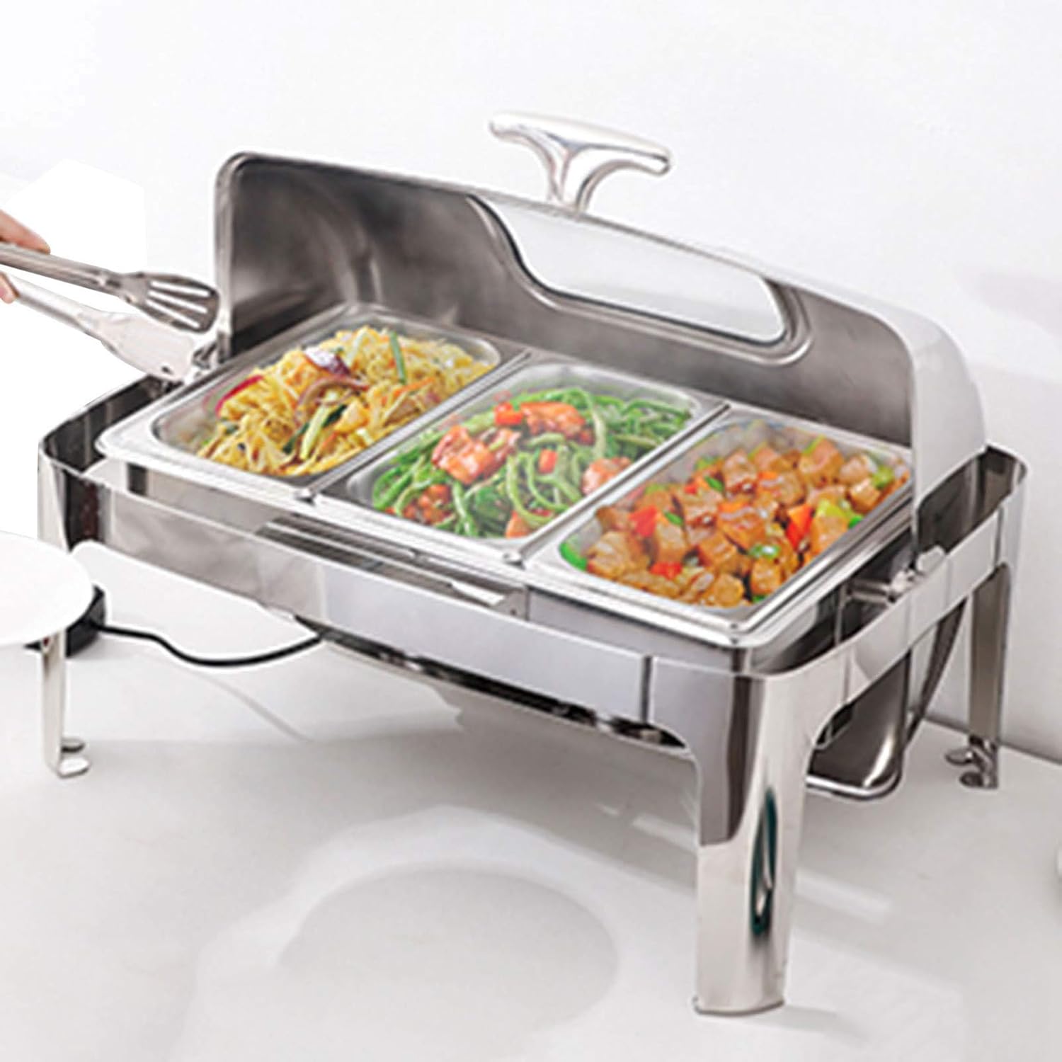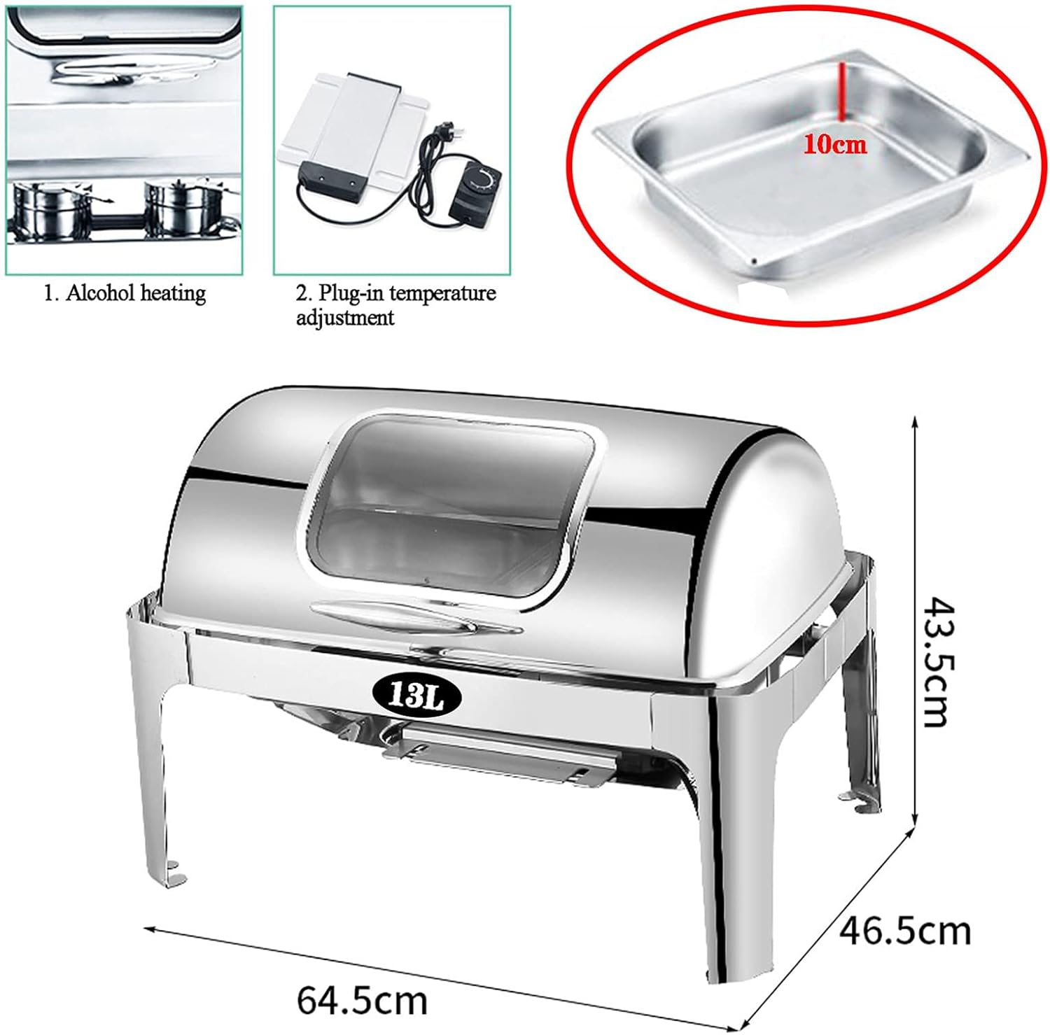 The hot pot food plate is crafted with thick stainless steel,ensuring safety and easy cleaning. Three types of food pans (full-size,??-size,and 1/3-size) accommodate a variety of dishes,catering to all your needs. The visual food cover design allows easy monitoring of the food inside,making it convenient to add or take food. The buffer resistance shaft design enables smooth and noiseless 90?°or 180?°rotation,ensuring durability and longevity. Specifications: Product Name: Buffet server Product Volume: 13L Product Size: 64.5*46.5*43.5cm Adjustable Temperature: 30-85?° Product Material: Stainless steel Heating Method: Electric heating plate heating Plate: Full,?? size,and 1/3 size food pans Product Power: 400W/ Included in the Package: Stainless Steel Food Warmer ?— 1 Note: Please allow a 1-3cm measurement error in product size due to manual measurement. The color of the screen may vary due to different projectors; this is normal. If you have any questions,please feel free to contact us.