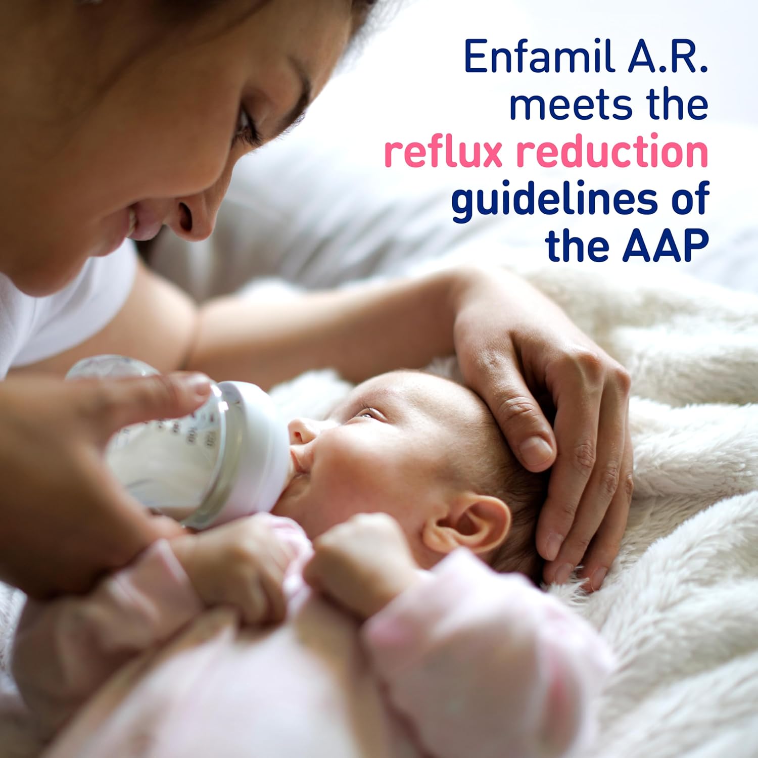 Enfamil A.R formula is specially formulated with added rice starch for a thicker consistency to reduce reflux and spit-up by over 50%* in one week. Enfamil A.R. formula provides complete nutrition for your infant up to 12 months and is designed to reduce your baby’s spit-up with a thicker formulation. Spit-up is a common side effect of your baby's developing digestive system. But a switch to Enfamil A.R. Infant Formula may make a difference. *Based on a clinical study of Enfamil A.R. infant formula before the addition of DHA, ARA and prebiotics with infants who spit up frequently (5 or more spit-ups per day), comparing frequency and volume of spit-up after feeding Enfamil A.R. to the same babies at the beginning of the study.