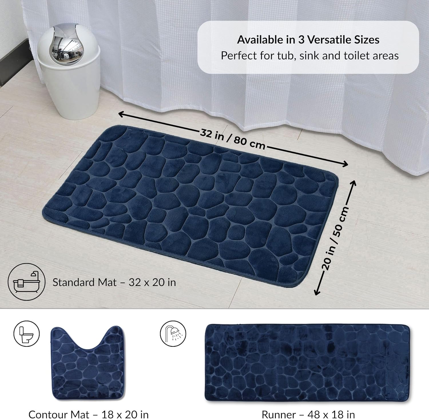 | Other Special Features of the Product | 3D Pebble Texture – Spa-inspired design adds a stylish and soothing visual effect, Machine Washable – Easy care at 30°C for long-lasting use, Memory Foam Cushioning – Soft, supportive feel relieves pressure on feet, Non-Slip Backing – Keeps mat securely in place on smooth surfaces, Super Absorbent Surface – Quickly locks in moisture to keep floors dry |