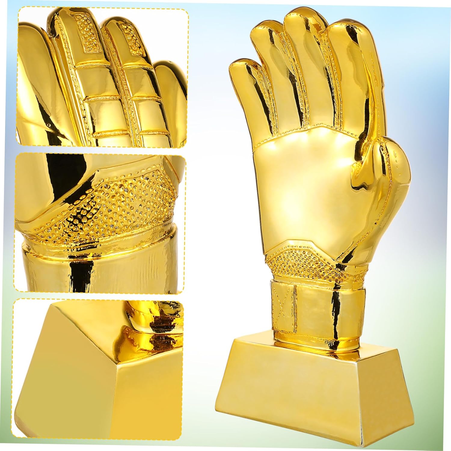 Package List 1 x Trophy Features -Color: resistant glove trophy -Size: 21.00X12.00X5.00cm/8.25X4.72X1.97in exquisite trophy decor -Material:ABS exquisite soccer trophy -Exquisite workmanship and come with smooth and bright color surface, stylish and attractive school trophy decor. -Challenge everyone to have a great time at your party and give them the recognition and recognition trophy decor. -The trophy is a great party favor for all your guests. Make for football game competition with a trophy school soccer trophy. -Proper size makes the trophy convenient to put in small box and present bags decorative trophy decor. -Manufactured with safe and wear resistant material, wear-resistant and for long term storage use match soccer trophy.Goods Informationdesktop soccer trophy It's for schools, events, parties, birthdays and offices for competitions, awards, party , corporate events, sports and race-themed party supplies, props, prizes, games, participation and more.school trophy decor This is a soccer glove trophy adornment, very creative