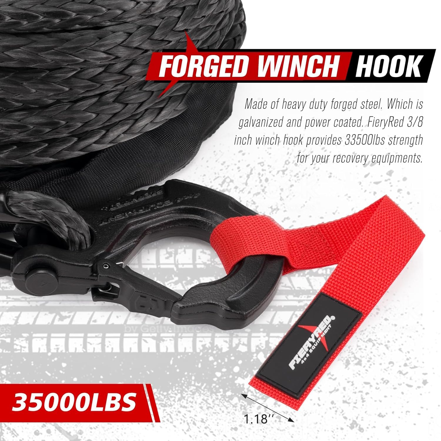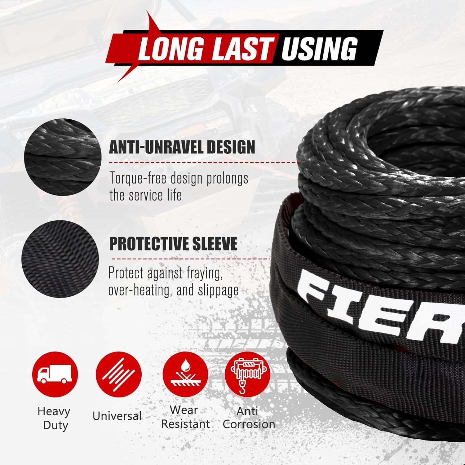 FIERYRED 3/16inch 50FT 8500LBS Synthetic Winch Rope Cable Kit with Forged Hook Rubber Stopper and Fairlead,Winch Line Replacement for 2000-3500LBS Winch, ATV, UTV, OFFROAD FieryRed Synthetic 1/2"x22" Soft Shackle with Snatch Ring, Recovery Rope 38000lbs Towing Ring 44000lbs Breaking Strength for Towing Truck ATV UTV SUVs Off-Road Vehicel, Black&Red