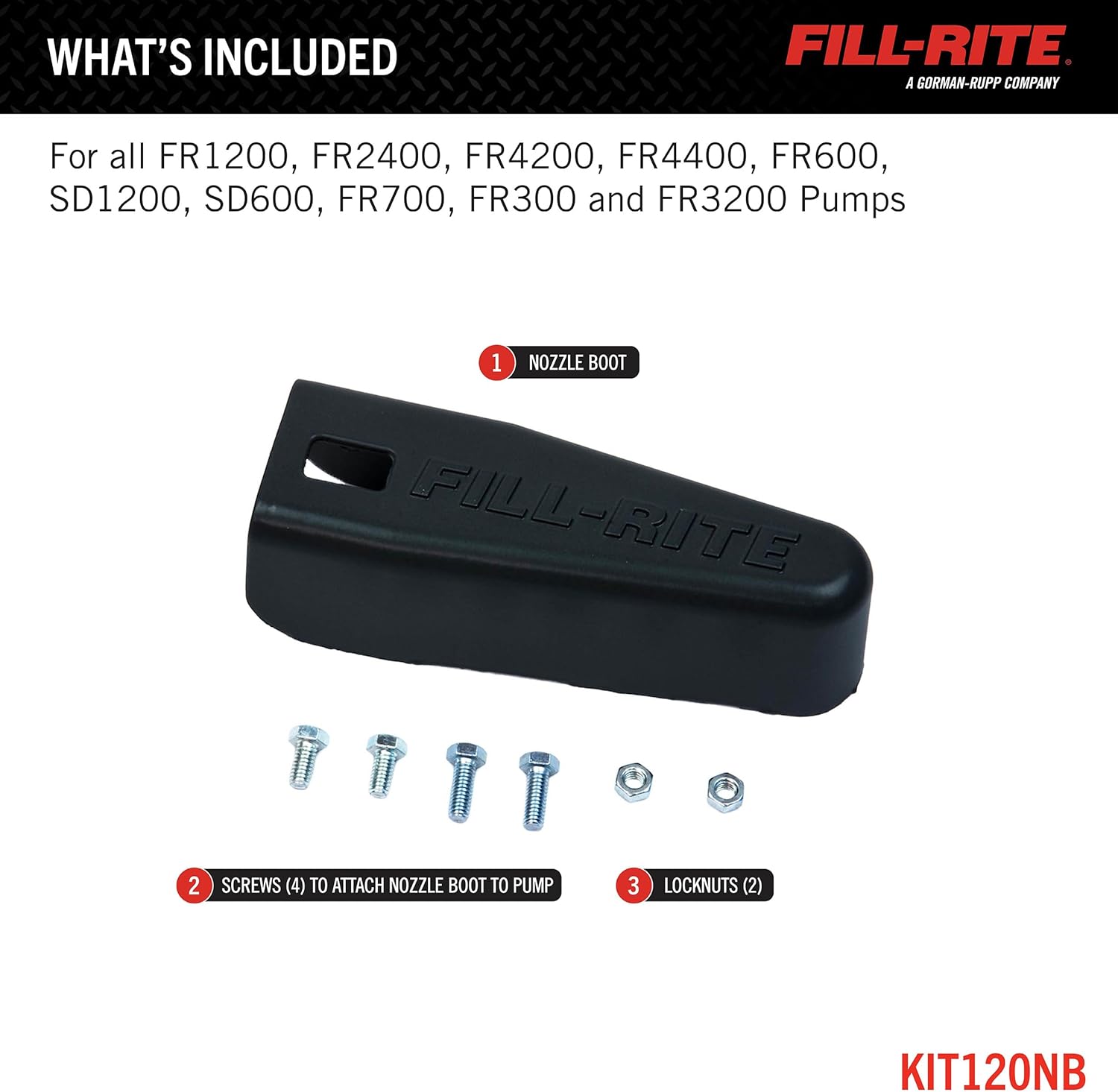 Keep your Fill-Rite fuel transfer pump performing like new with the Fill-Rite KIT120NB Nozzle Boot Repair Kit — a genuine OEM replacement designed for durability and easy installation. This kit includes a rugged nozzle boot, four bolts, and two nuts, giving you everything you need to restore your pump’s nozzle holder and ensure a secure fit. Compatible with a wide range of Fill-Rite pump models, including the FR1200, FR2400, FR4200, FR4400, FR600, SD1200, SD600, FR700, FR300, and FR3200 Series, this kit provides a perfect match for most small DC and AC transfer pumps. Built from high-strength materials, it resists wear, corrosion, and exposure to fuels, oils, and chemicals—making it ideal for industrial, agricultural, and commercial fueling applications. Engineered and assembled in the USA, the Fill-Rite KIT120NB offers the reliability and quality that professionals trust. Replace damaged or worn components quickly, prevent leaks, and extend the life of your fuel transfer system with this easy-to-install repair kit.