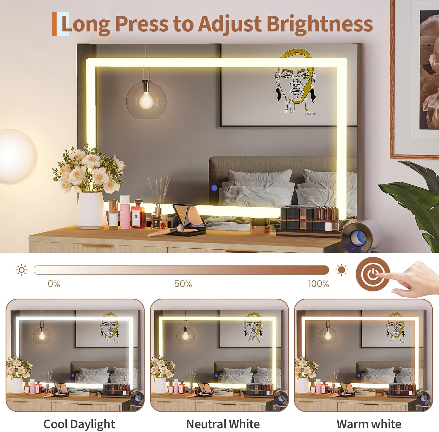 Key Features:- Vanity Desk with Large Mirror and Integrated LED Lights for optimal makeup application- Adjustable brightness and three lighting modes to create the perfect ambiance- Two spacious drawers for convenient storage of makeup and accessories- Stylish fluted design that complements modern and classic bedroom interiors- Durable construction for long-lasting useTransform your daily beauty routine into a luxurious experience with this versatile and stylish makeup vanity. Perfect for bedrooms, dressing rooms, or any personal space where you want to feel pampered and organized. Order now and enjoy a beautifully illuminated, clutter-free vanity setup that enhances your beauty regimen.