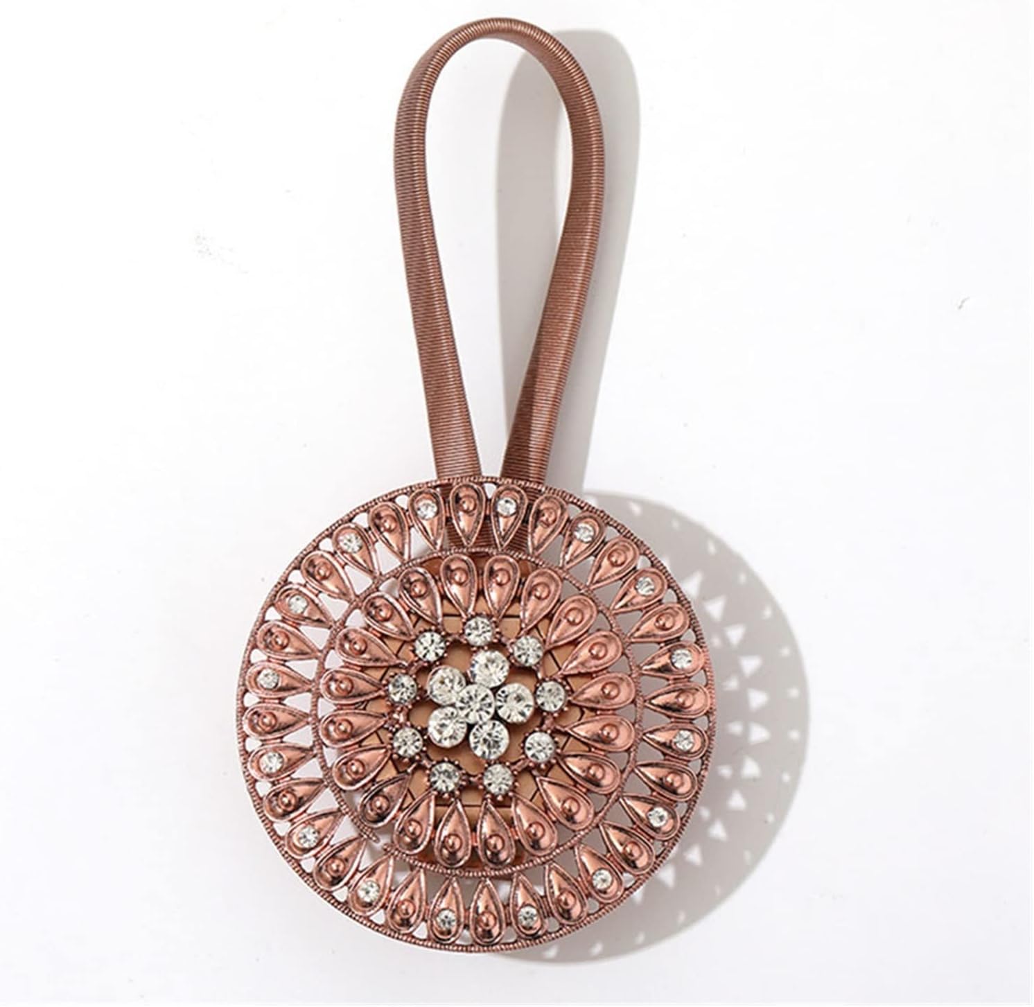 It's made of material.This simple fashion magnetic curtain tieback .Attractive curtain accessories brighten your life.Suitable for any type curtain :thin curtain ,gauze curtain ,mosquito net .Ect.Do not need hook,punch and install,easy to use without damaging your walls.This of curtain tie backs will be easy to use for you,the magnet is strong enough to keep the curtain in place butnot so strong that it will take a lot of force to separate them.It's a useful tools for your home or office ,great for pulling back or letting down curtain, great way to keep curtains stylish and pretty.Specification:Type: Curtain bucklePattern: Floral,CrystalMaterial: Rhinestone aluminum alloy Nd Fe B magnet stainless steel spring wireSize: Total length (including magnetic buckle + alloy spring rope) about 41cm/16.14 inch,of which alloy spring rope is about 25cm/9.84 inch,exdendable length about 3 times of its origional length,diameter of alloy flower about 10cm/3.94inchApplication: suitable for all curtains, especially for shading curtains, spring wire can be stretchedPacking List:1pcs x Magnetic Curtain BuckleNotes:Due to the light and screen difference, the item's color may vary slightly from the picture.Please allow 1-3 cm differences due to manual measurement.Thank you for your kindly understanding.Pleated lacing is convenient for decorative cord buckles
