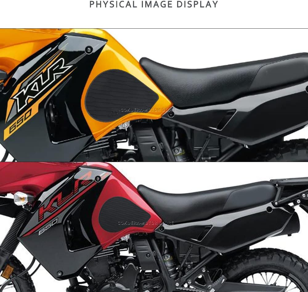 Motorcycle accessories Non-Slip Side Fuel Tank Stickers Pad Rubber Sticker For KLR 650 KLR650 2017 2018- Fotment: For KLR 650 KLR650 2017 2018 - Features: -High-density rubber improves strength,Strong and excellent bonding quality. -Side fuel tank pads provide the best protection against scratches or wear marks on the knees of the fuel tank. -Sporty appearance, better driving experience and anti-scratch protection. Notice: Please pay attention to whether this item is suitable for your motorcycle and model before buying. If you have any questions, please contact us, we will help you.